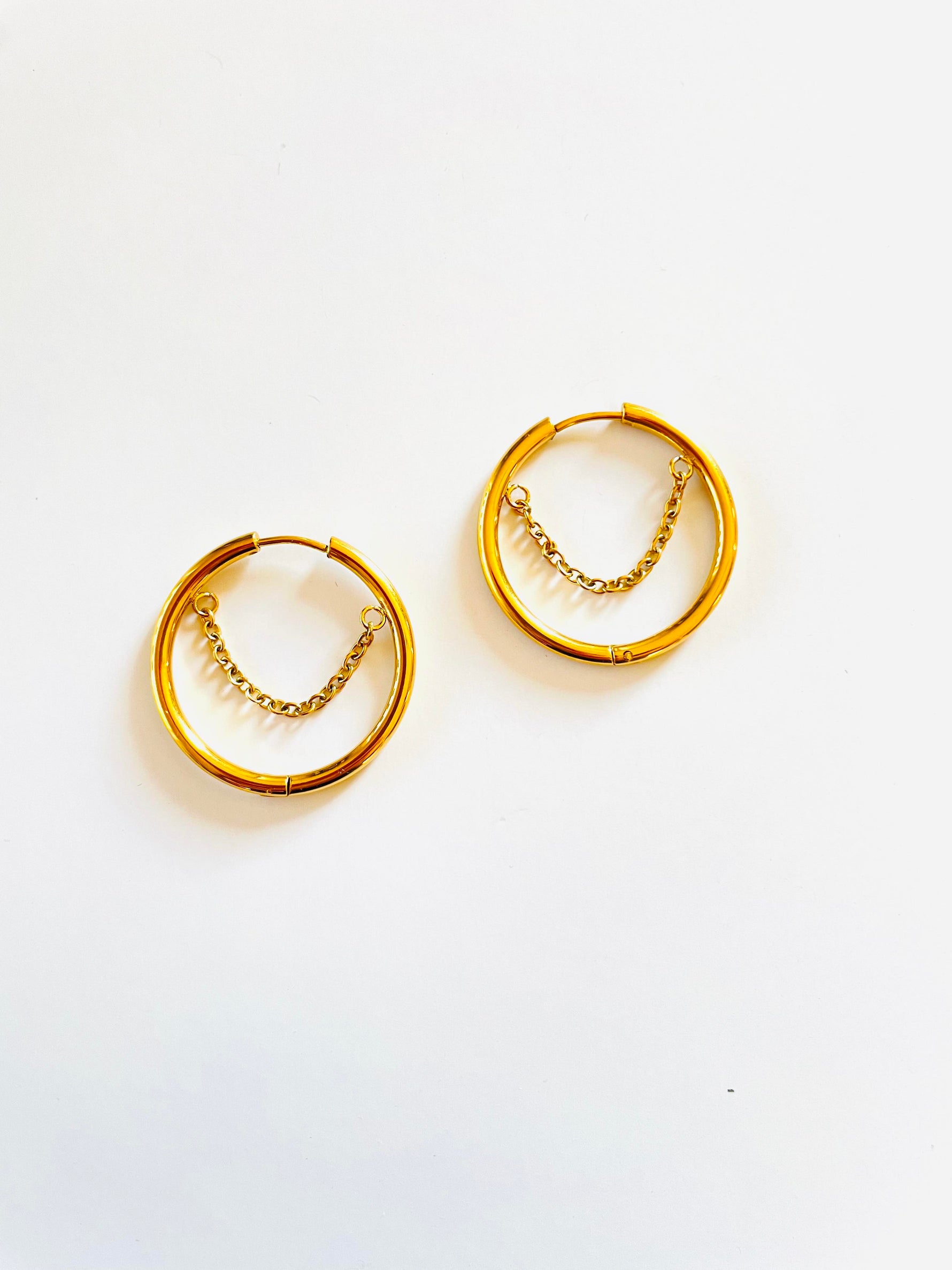 Rock these waterproof beauties, the Layered Hoop Earrings! Made with 18k gold and stainless steel, these earrings are both stylish and durable. Perfect for any occasion, you won't have to worry about taking them off before taking a dip!