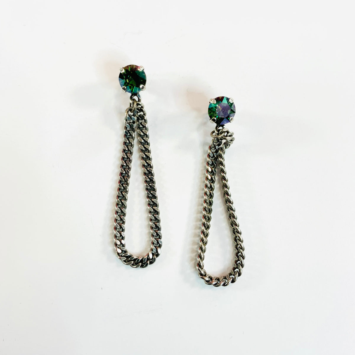 Loop Chain Post Earrings set into Antique Silver Metal with Envy Crystals