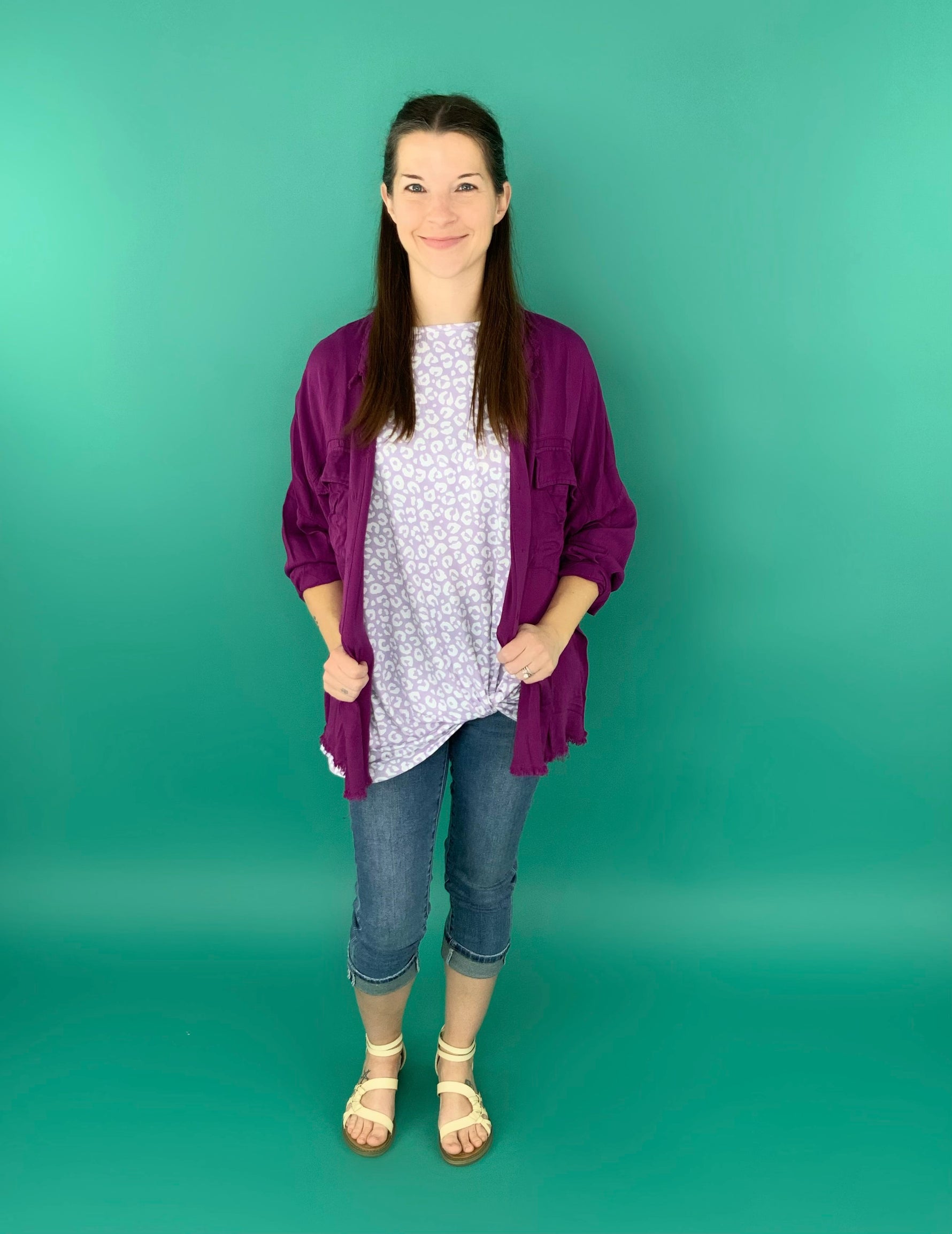 This lightweight top will be an essential in your closet for many seasons! Wear it on its own or over a cute tank or tee!