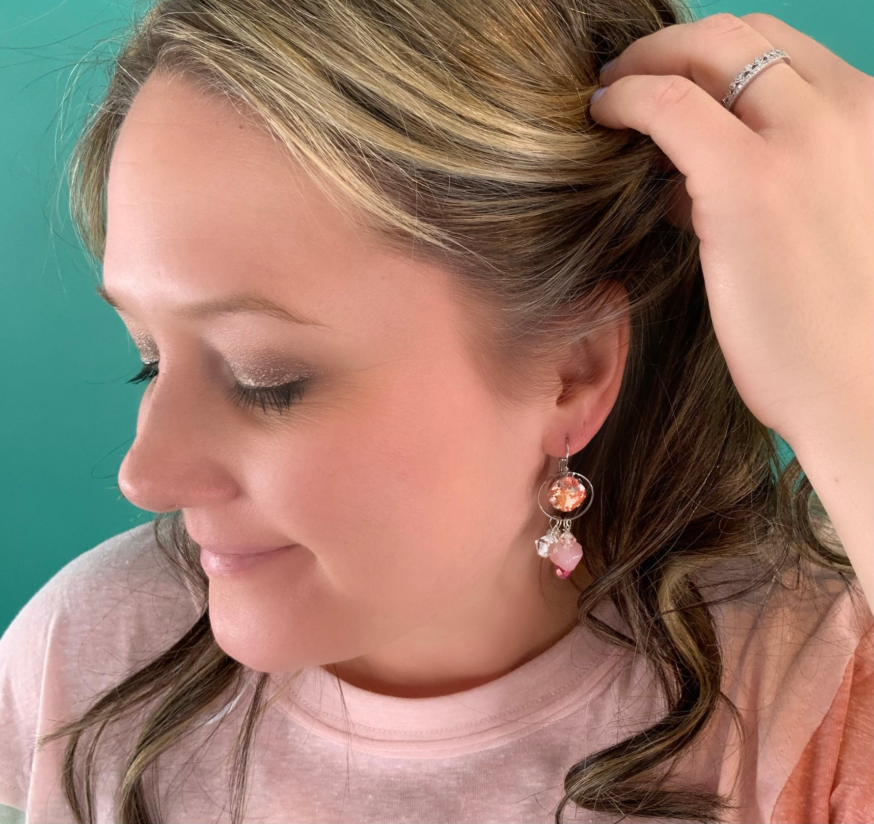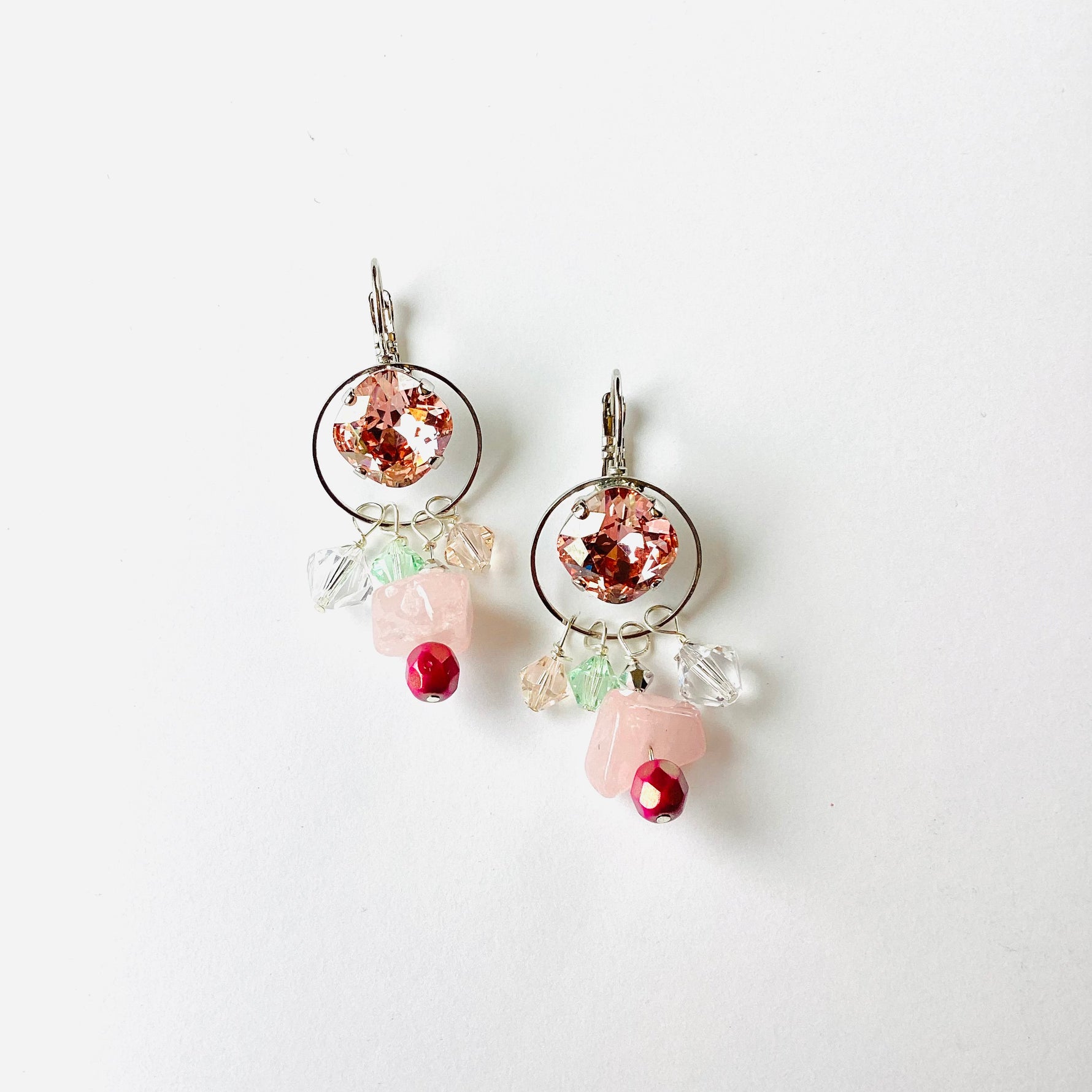 Crystals in Rose Champagne, Chrysolite, Silk, Crystal and Rose Quartz Stones, Pink Matte Fire Polished Beads