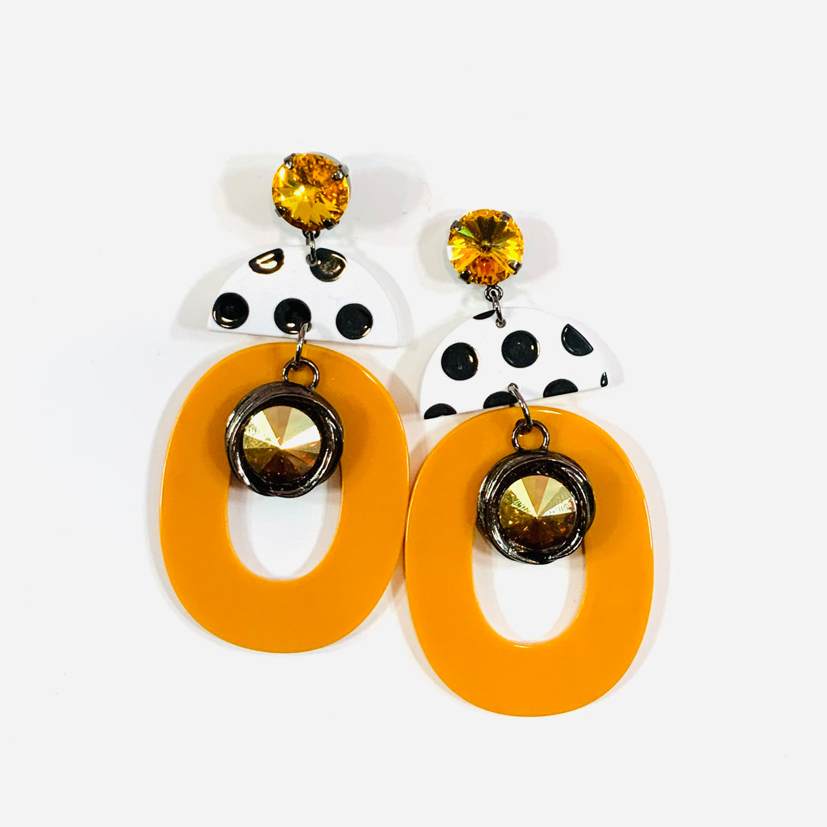 Marigold Earrings set into Black Metal with Sunflower and Metallic Gold Crystals