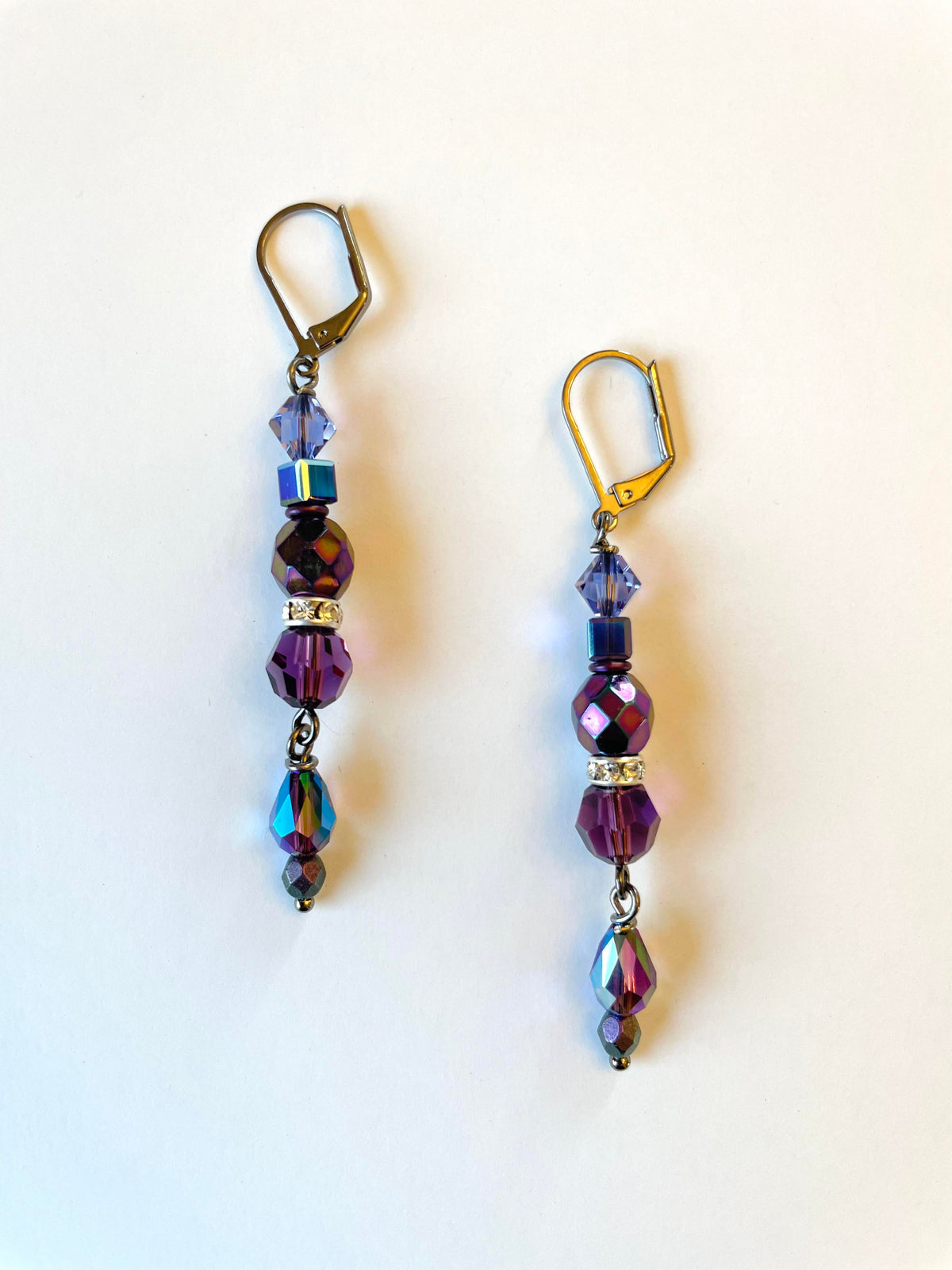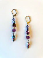 Midnight Plum Beaded Earrings set into Black Metal with Tanzanite, Amethyst, Amethyst Shimmer, Purple Velvet Crystals.