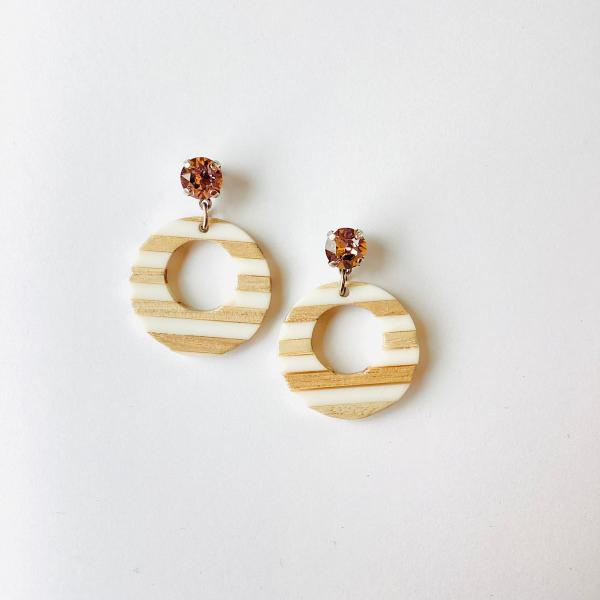 Mind Over Matter Wood Earrings set into Antique Silver Metal with Vintage Rose Crystals