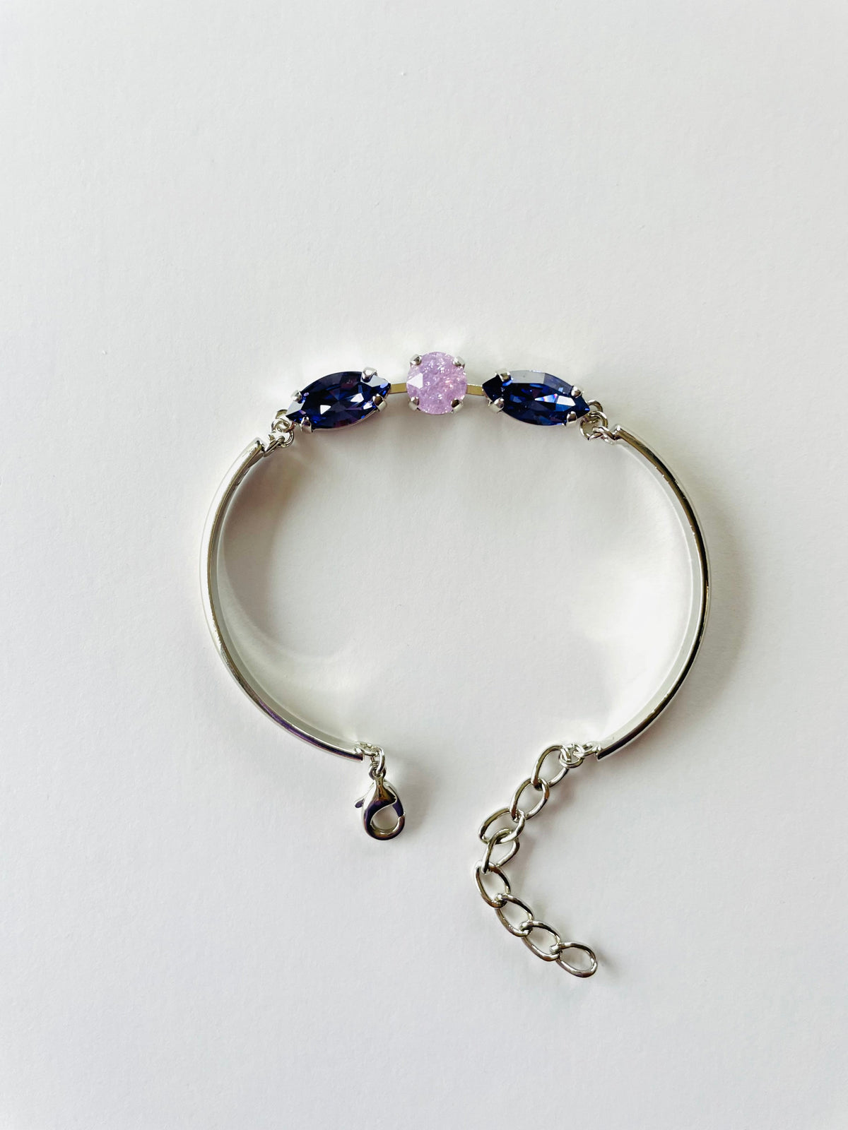 Navette Link Bracelet in Violet Ice set into Silver Plated Metal with Violet Ice and Tanzanite Crystals.
