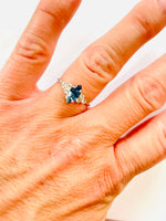 Navette Rhinestone Ring in Montana set into Shiny Silver Metal with Diamond Crystals Surrounding Each Side