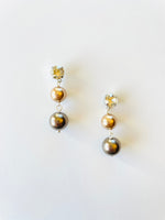 Nice & Neutral Earrings set into Shiny Silver Metal with Velvet Brown and Rose Gold Pearls and Silver Shade Crystals.