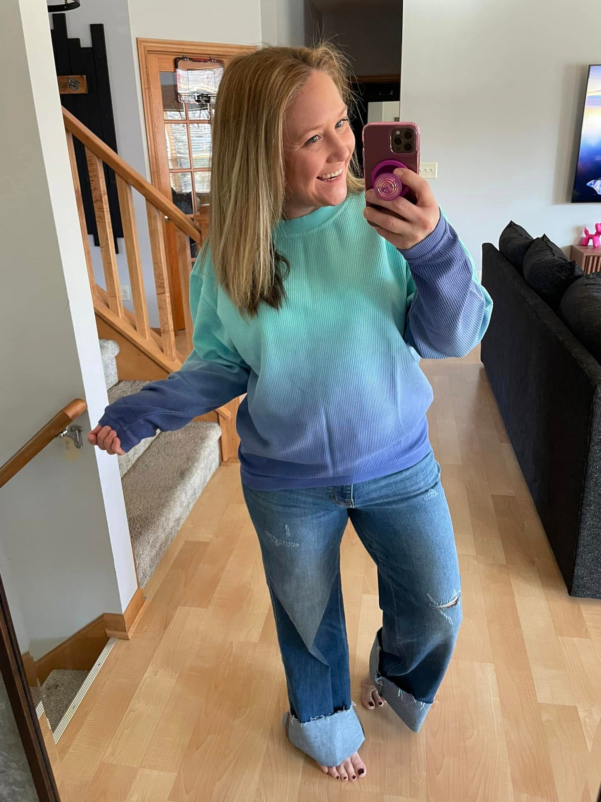 Ombre Cozy Cord Sweatshirt - Teal/Blue
