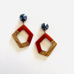 Orange Mahogany Wood Earrings