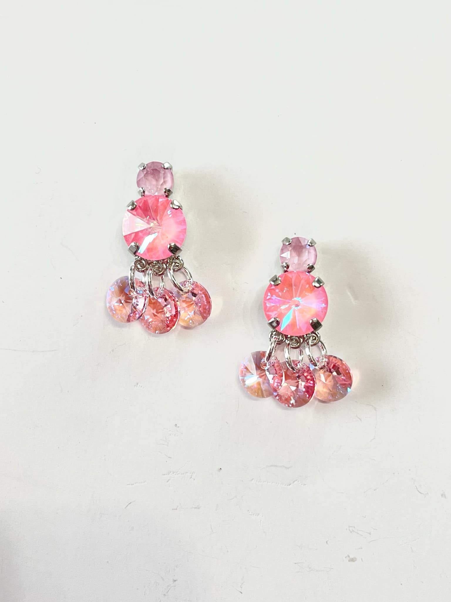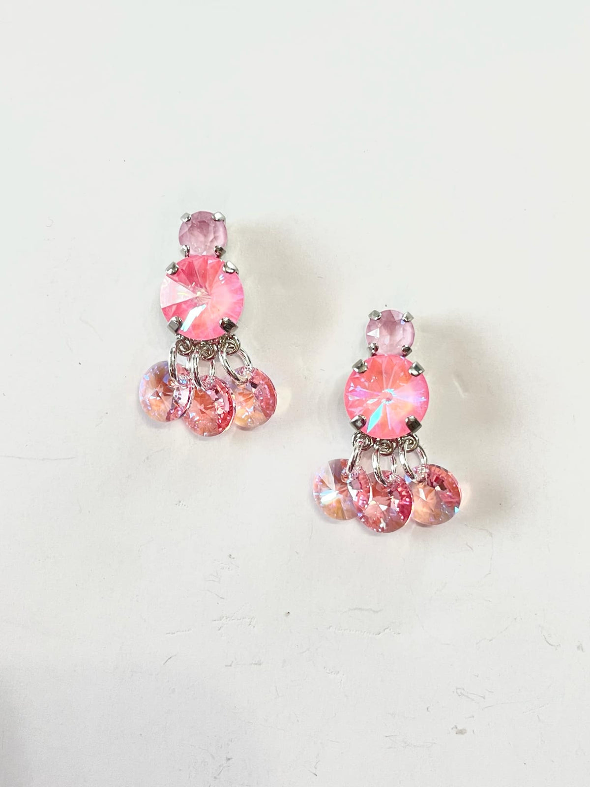 Pink Sunset Fringe Earrings set into Silver Plated Metal with Soft Rose Ignite, Light Rose Shimmer, and Ultra Peony Pink DeLite Crystals.