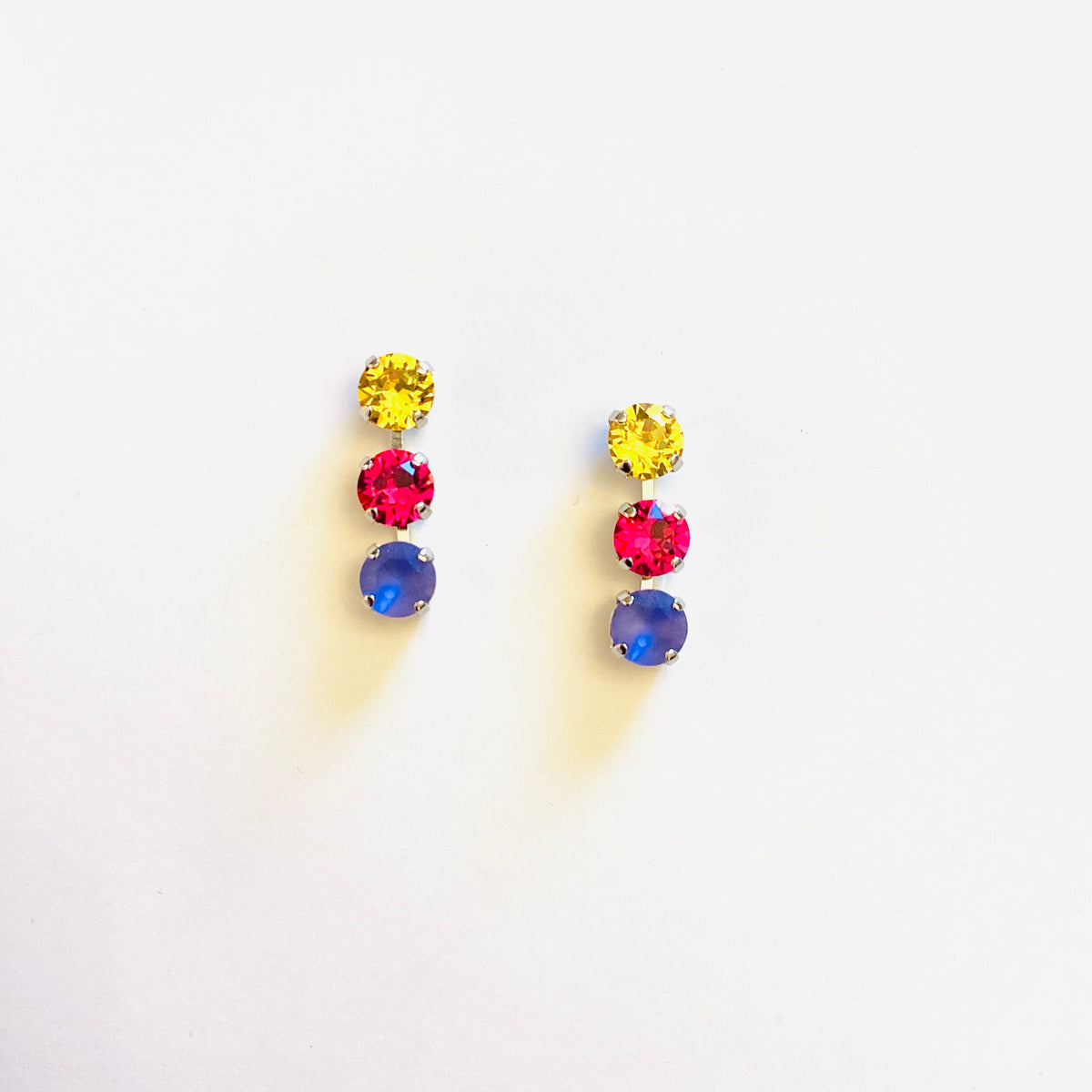 Polka Dot Earring in Pink/Purple/Yellow set into Shiny Silver Metal