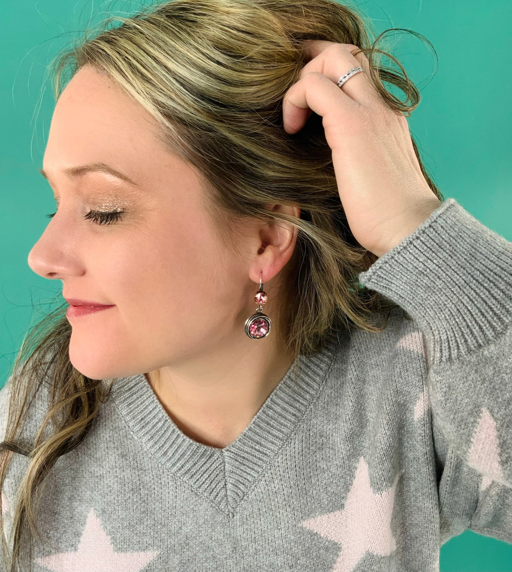 Pops of Pink Drop Earrings in Light Rose set into Antique Pink
