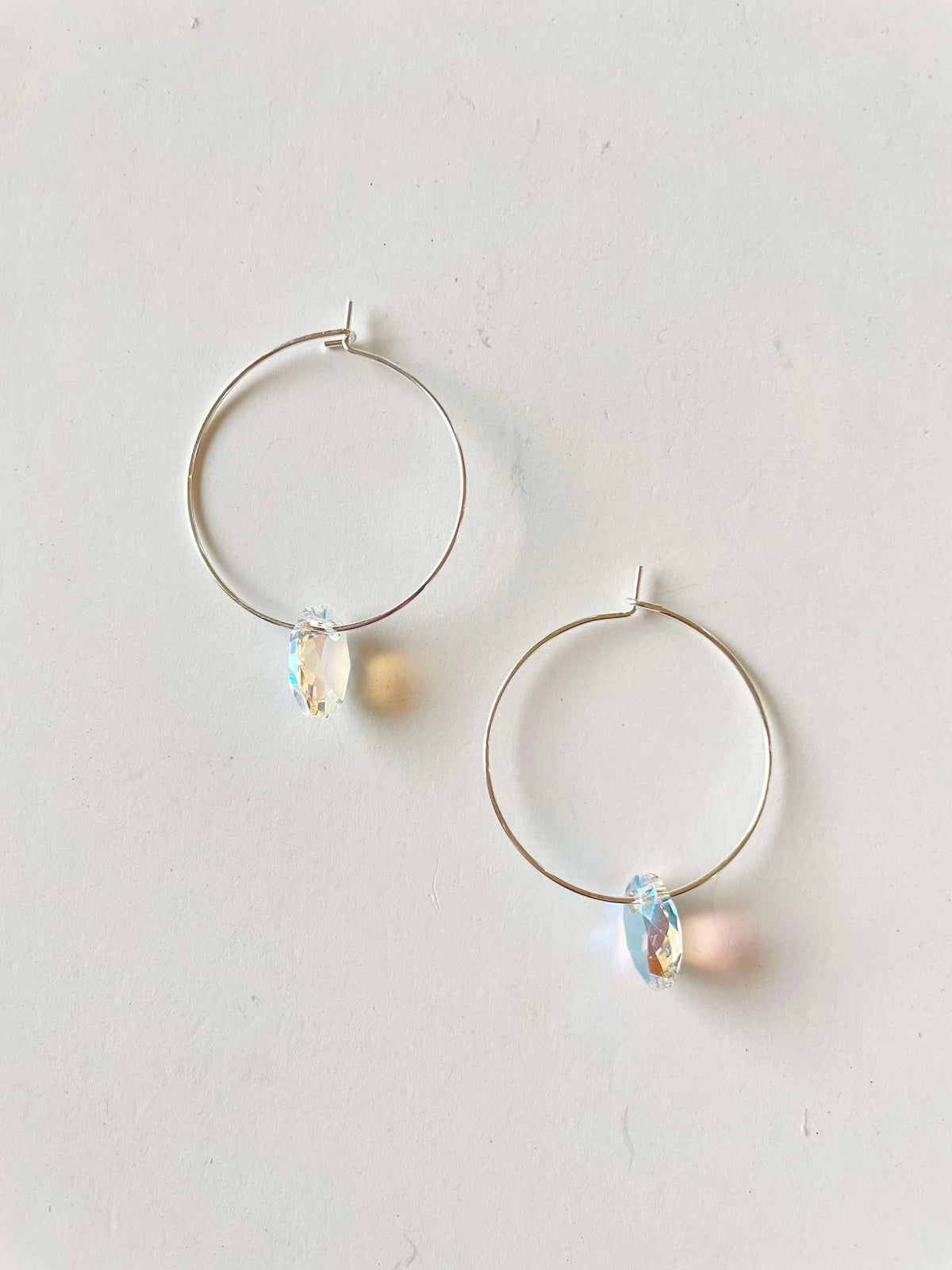 Pure Glow Hoop Earrings set into Silver Metal with Crystal Shimmer Oval Crystals.