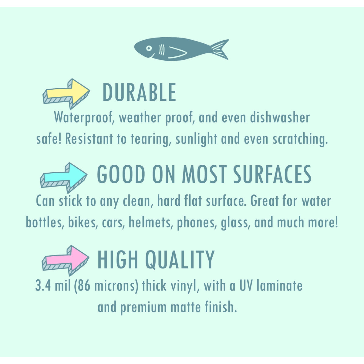 Printed on water-resistant, coated vinyl.
