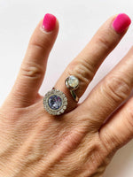 Rhinestone Wrap Ring in Lavender + Moonlight set into Shiny Silver Metal with Diamond Crystal