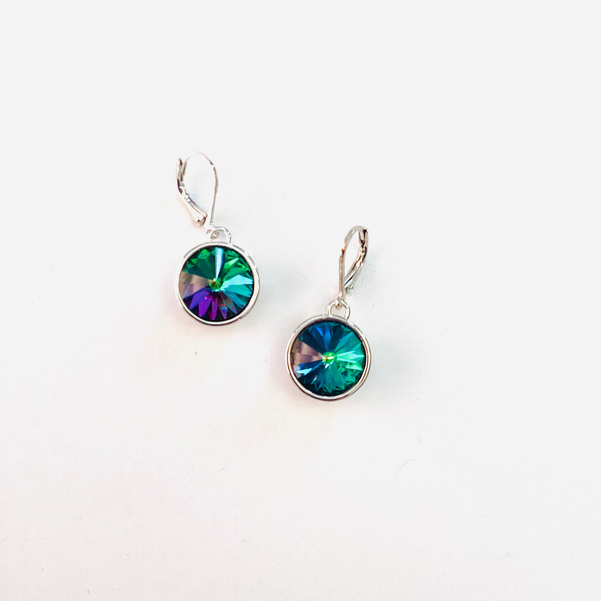 Rivoli Round Drop Earring in Electra set into Silver Plated Metal.