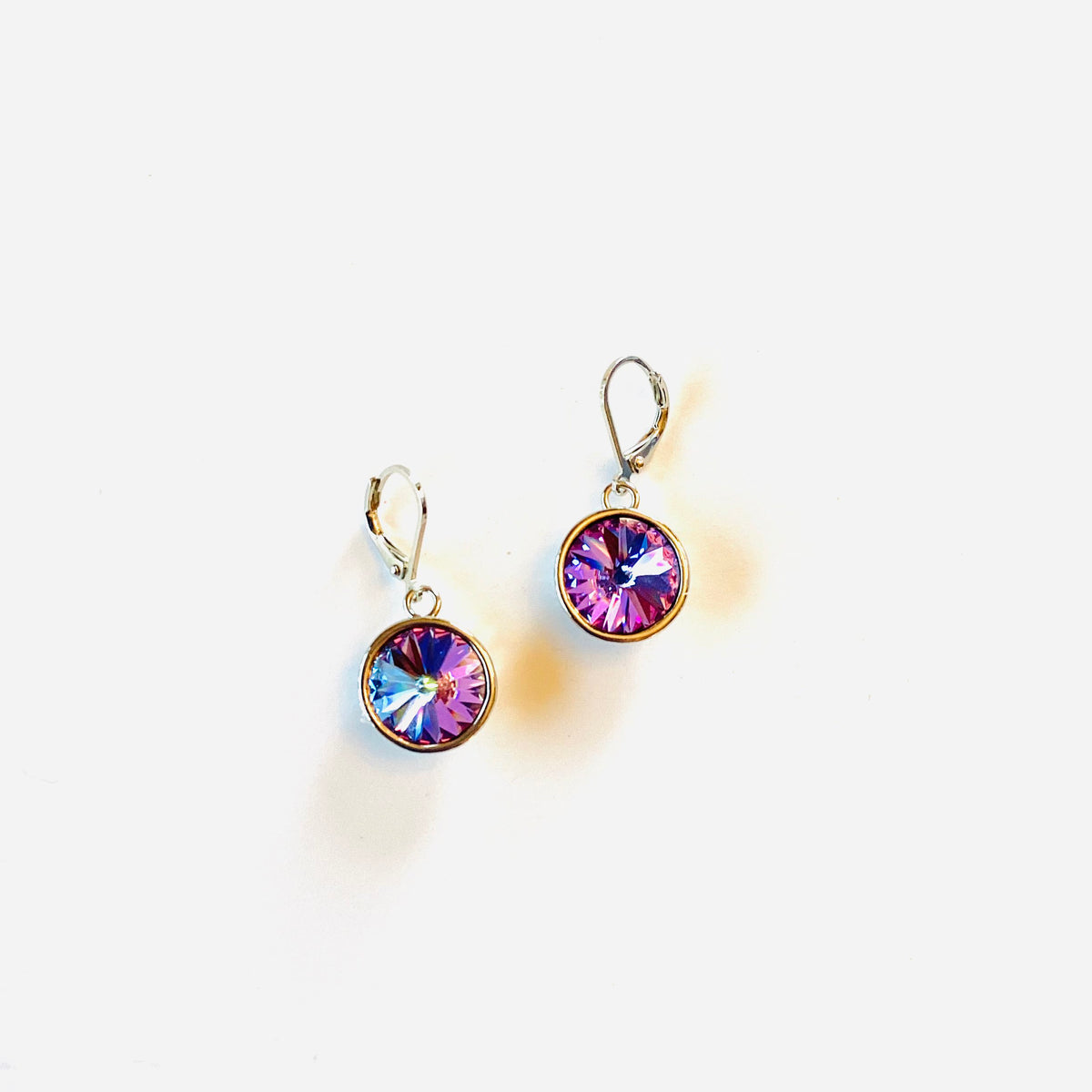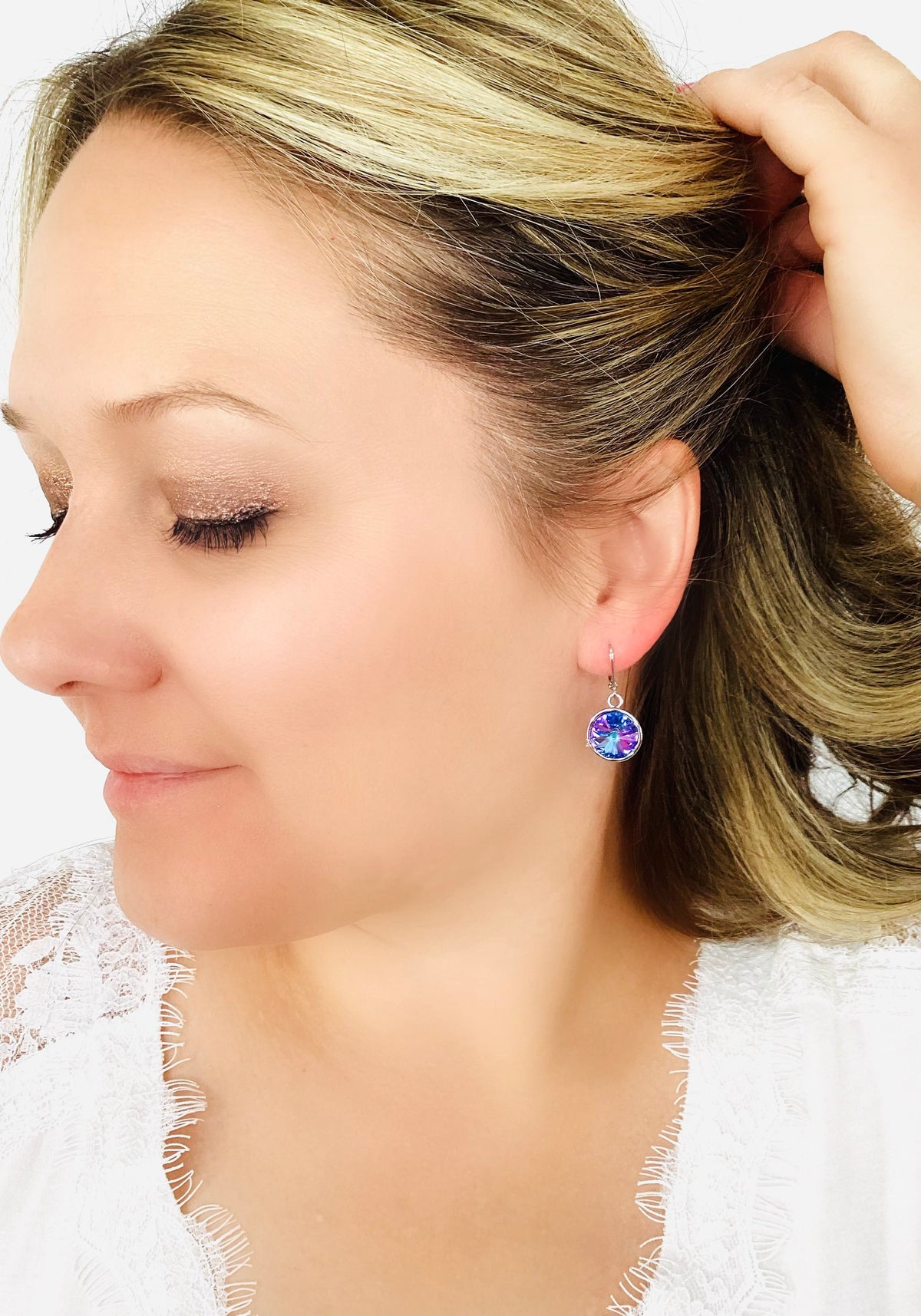 Rivoli Round Drop Earring in Vitrail Light set into Silver Plated Metal.