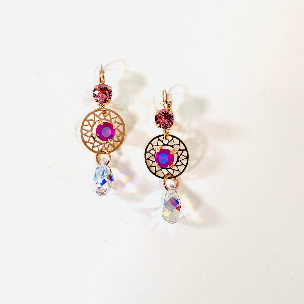 Rose Gold Dreamcatcher Helix Earrings set into Rose Gold Metal with Pops of Crystal AB, Light Rose