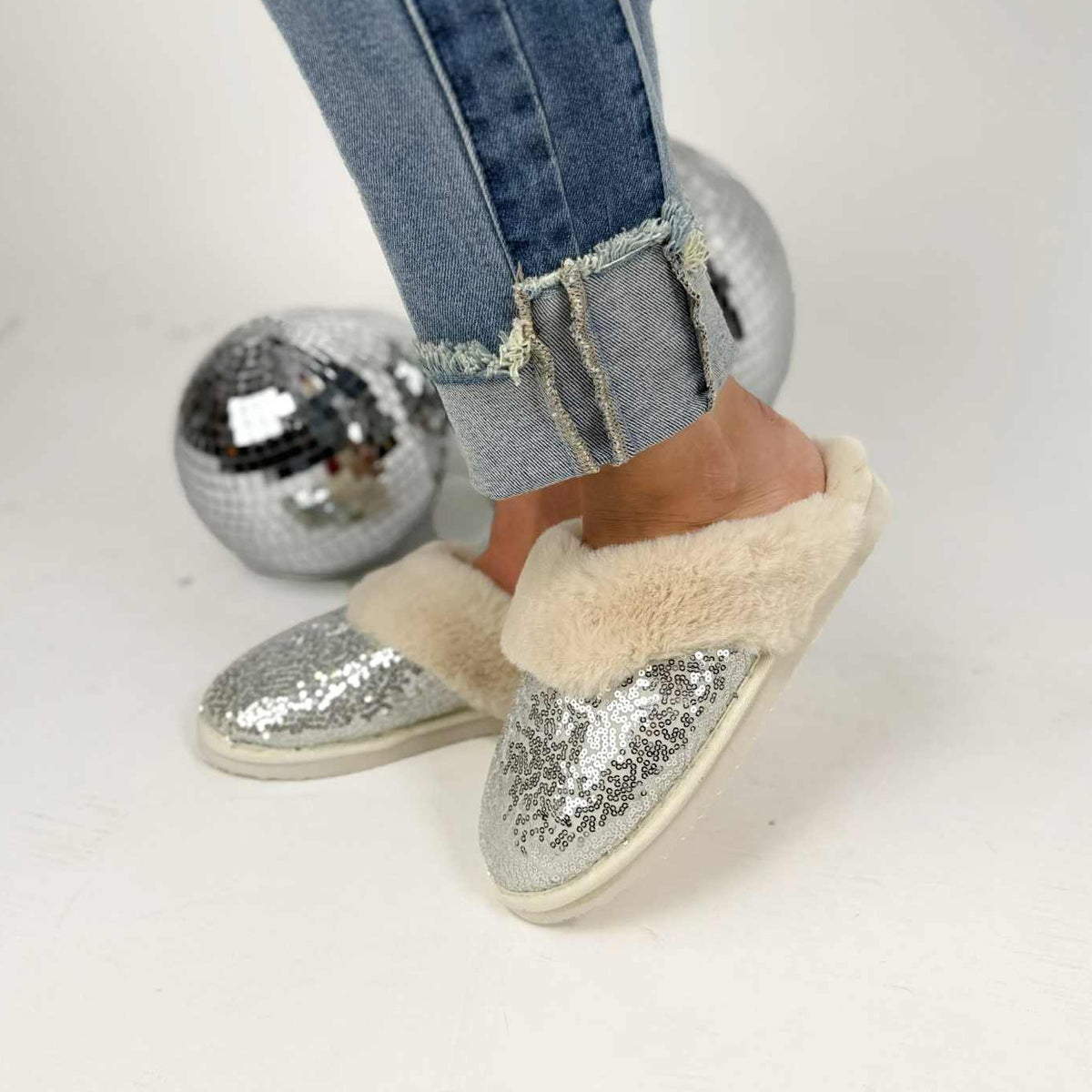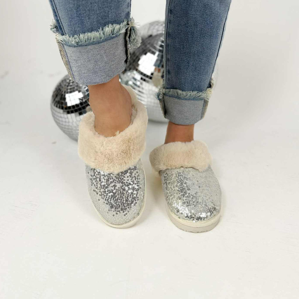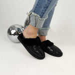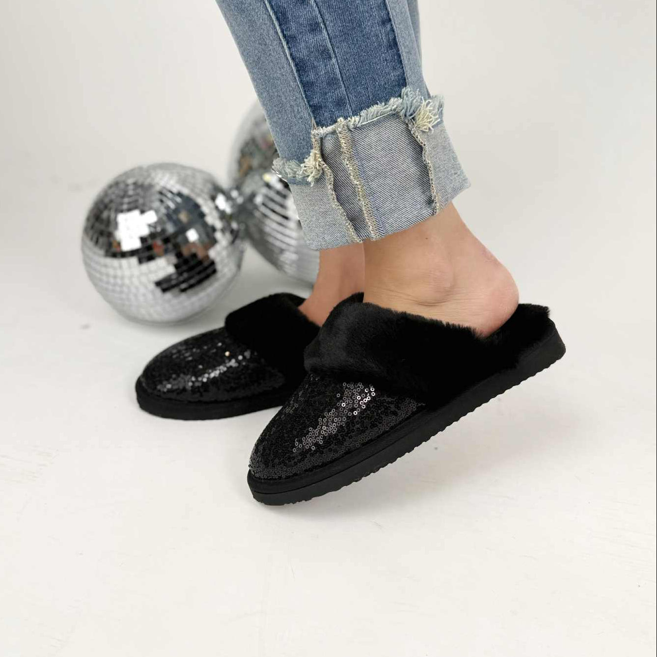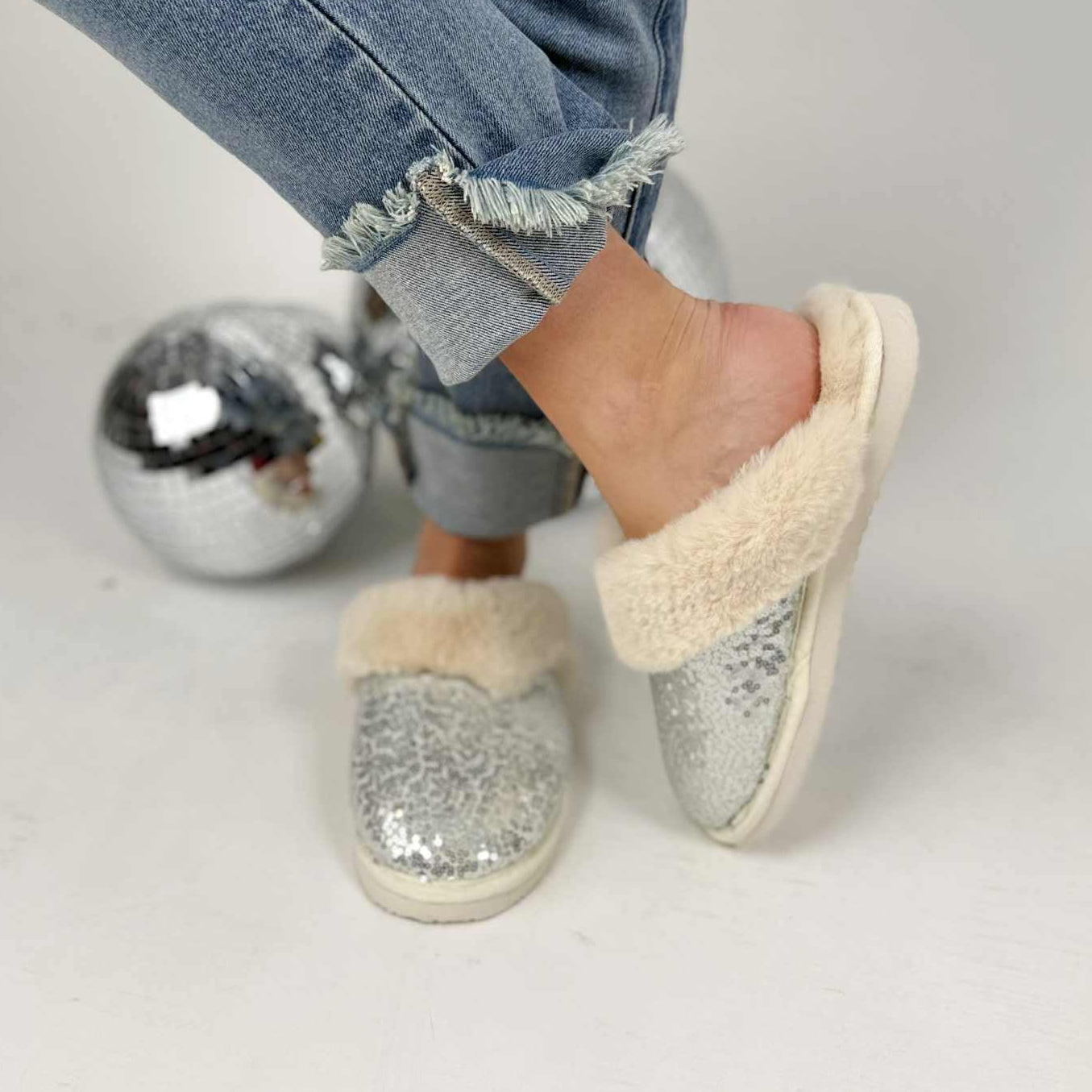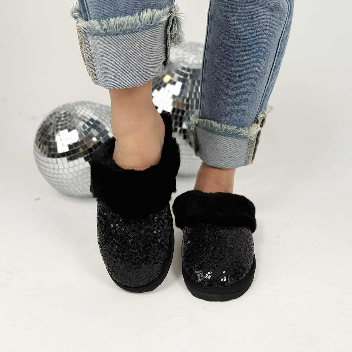 Step into style and comfort with these Sequin Faux Fur Slippers. With a touch of sparkle and plush faux fur, your feet will be cozy and chic. Perfect for lounging at home or glamming up your outfit, these slippers will be your new go-to.