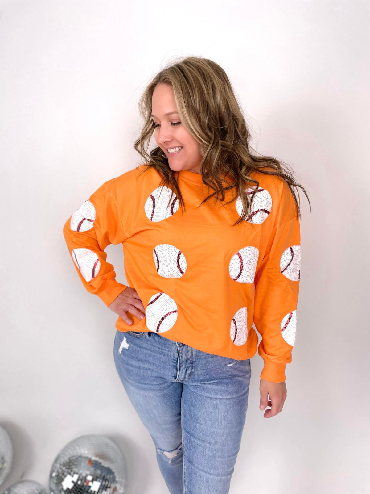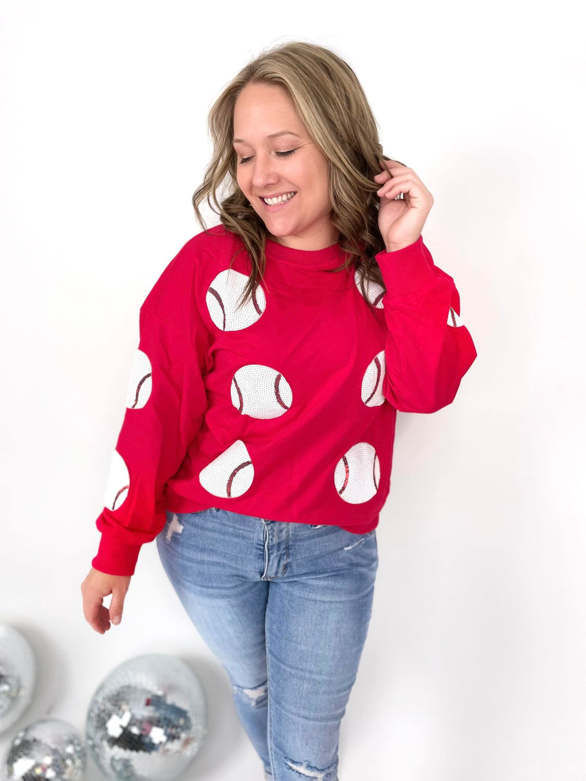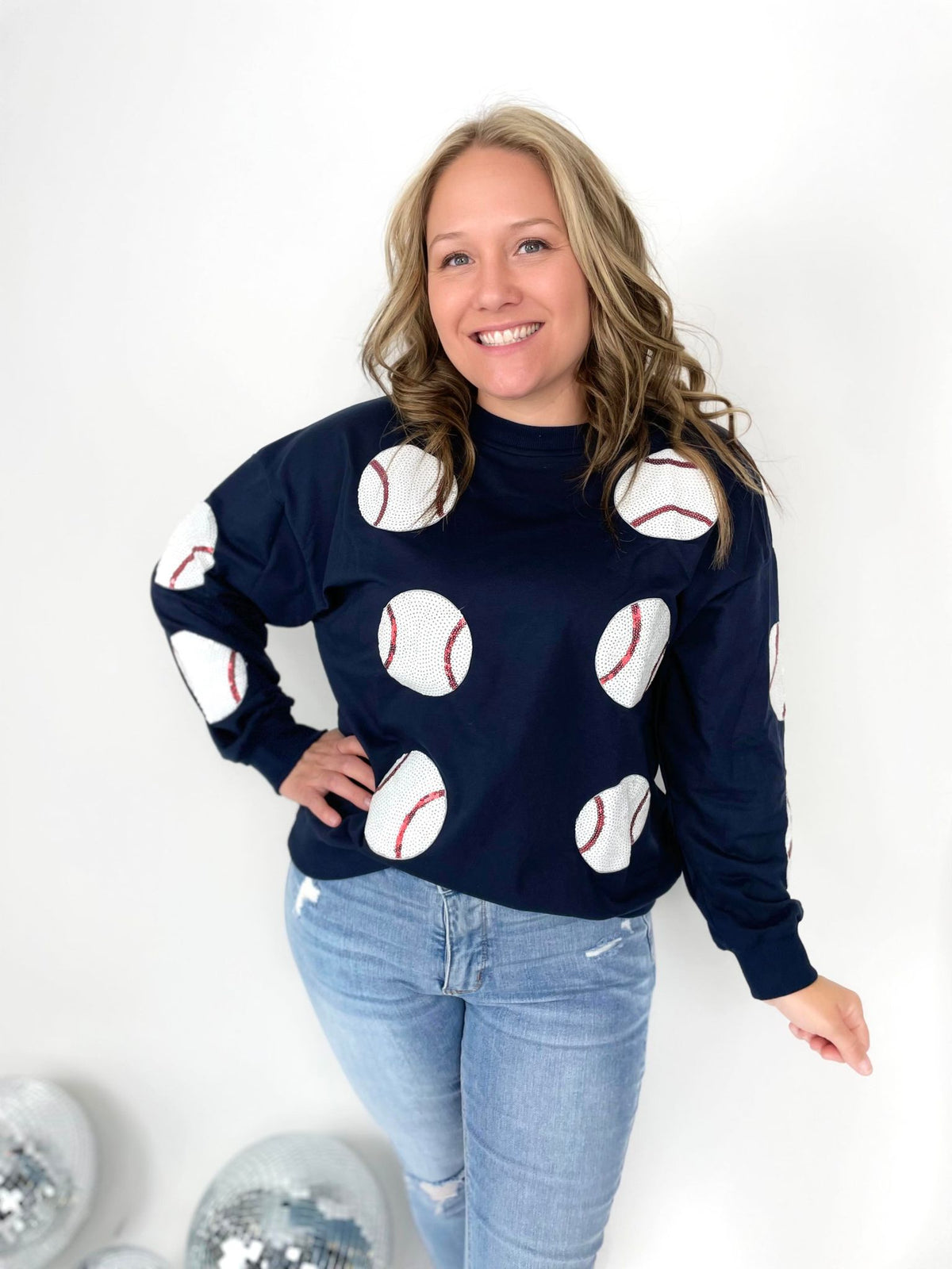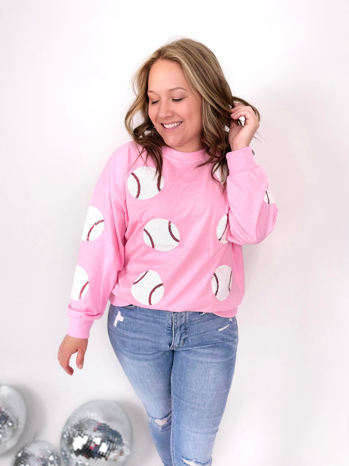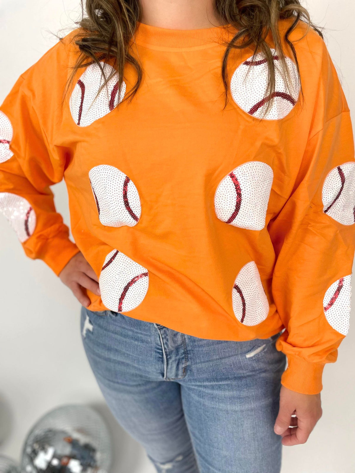Score a home run on the fashion field with our Sequin Sluggers Baseball Pullover. These pullovers are perfect to show off your team spirit, featuring playful sequin patches and cozy french terry fabric. Available in multiple colors for a personalized look. Get ready to shine on and off the field!