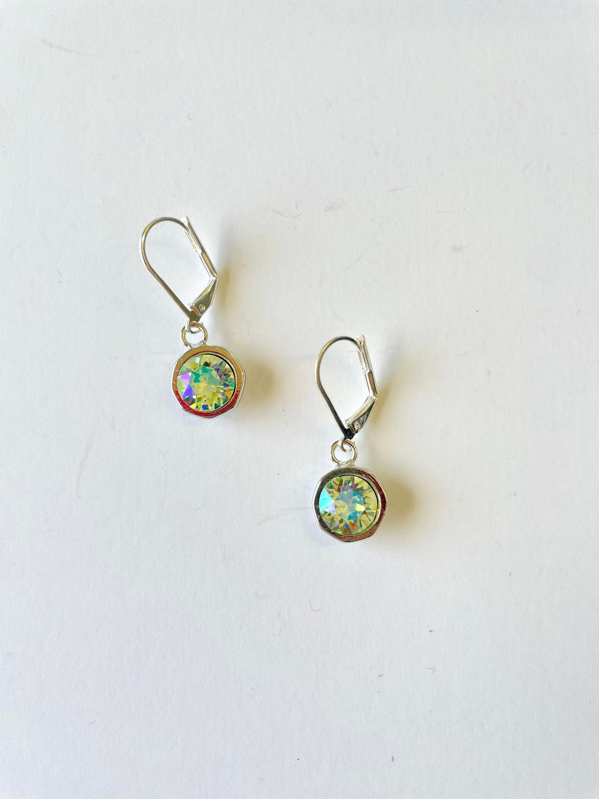 Simple Drop Earring set into Silver Plated Metal with Chrysolite Glacier Blue