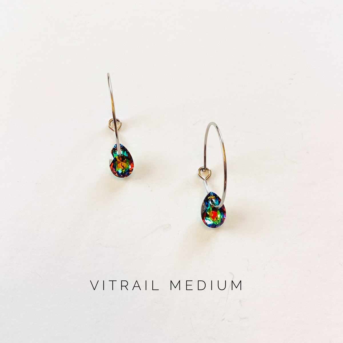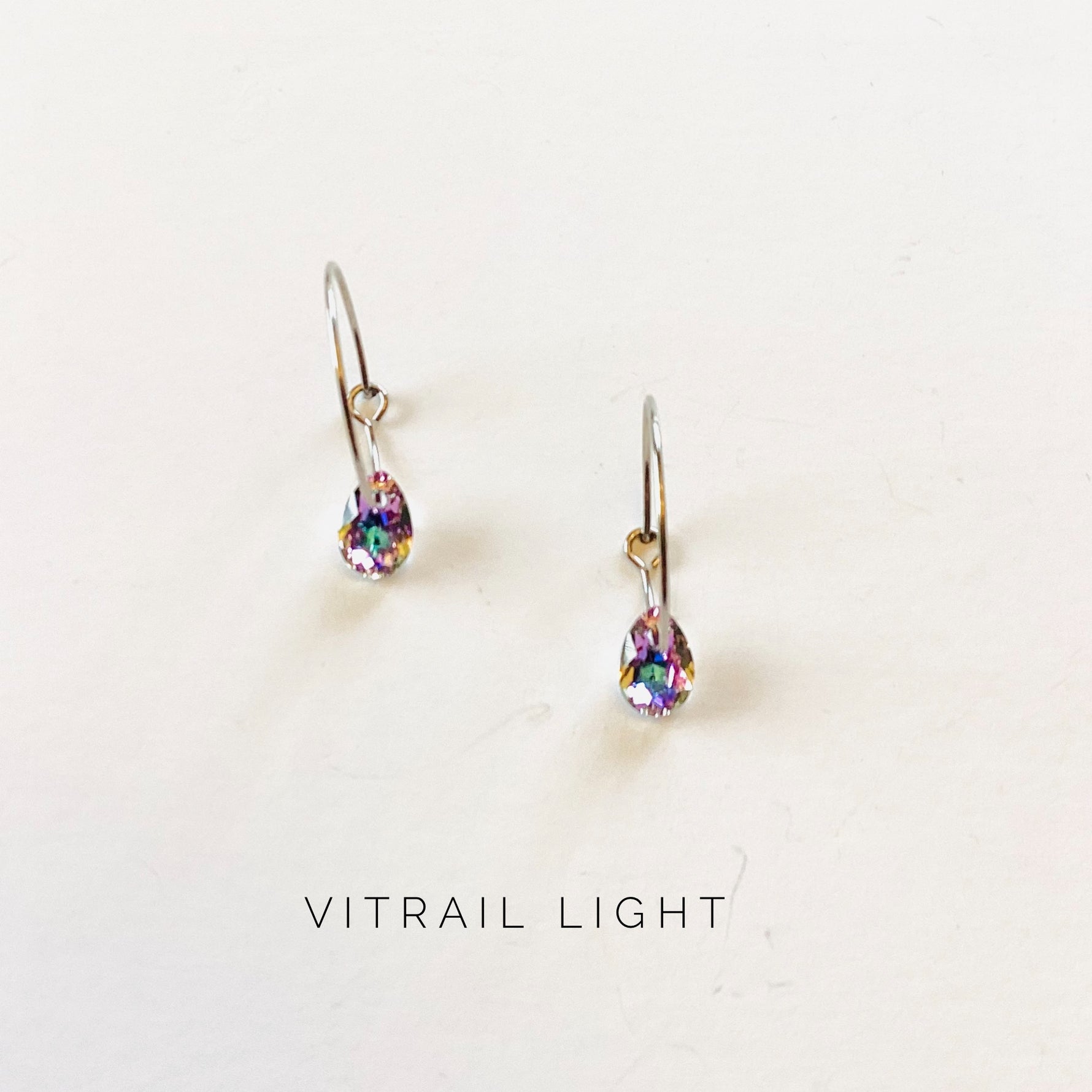 Tiny Pear Crystal on a Nickel Free Stainless Steel Hoop Earwire