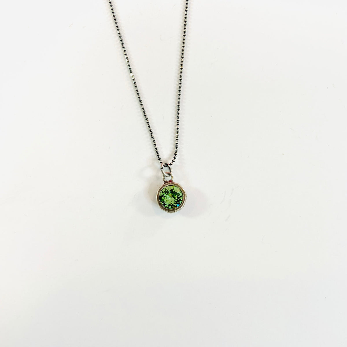 Simple Pendant Necklace in Peridot set into Antique Silver Metal
