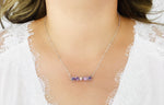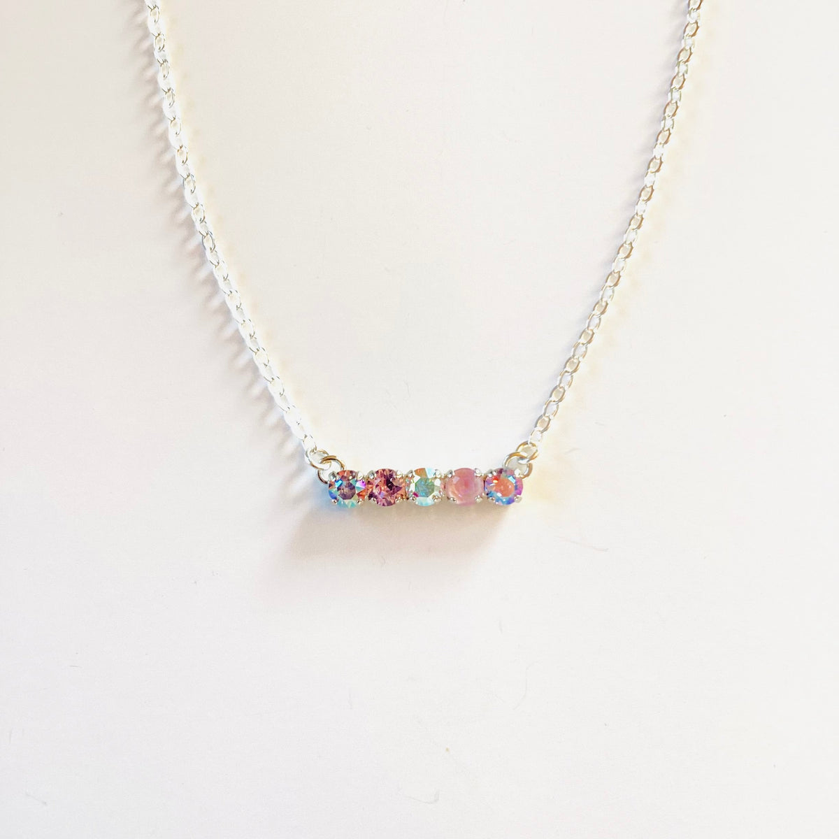 Small Bar Necklace in Purple Hues set into Shiny Silver Metal