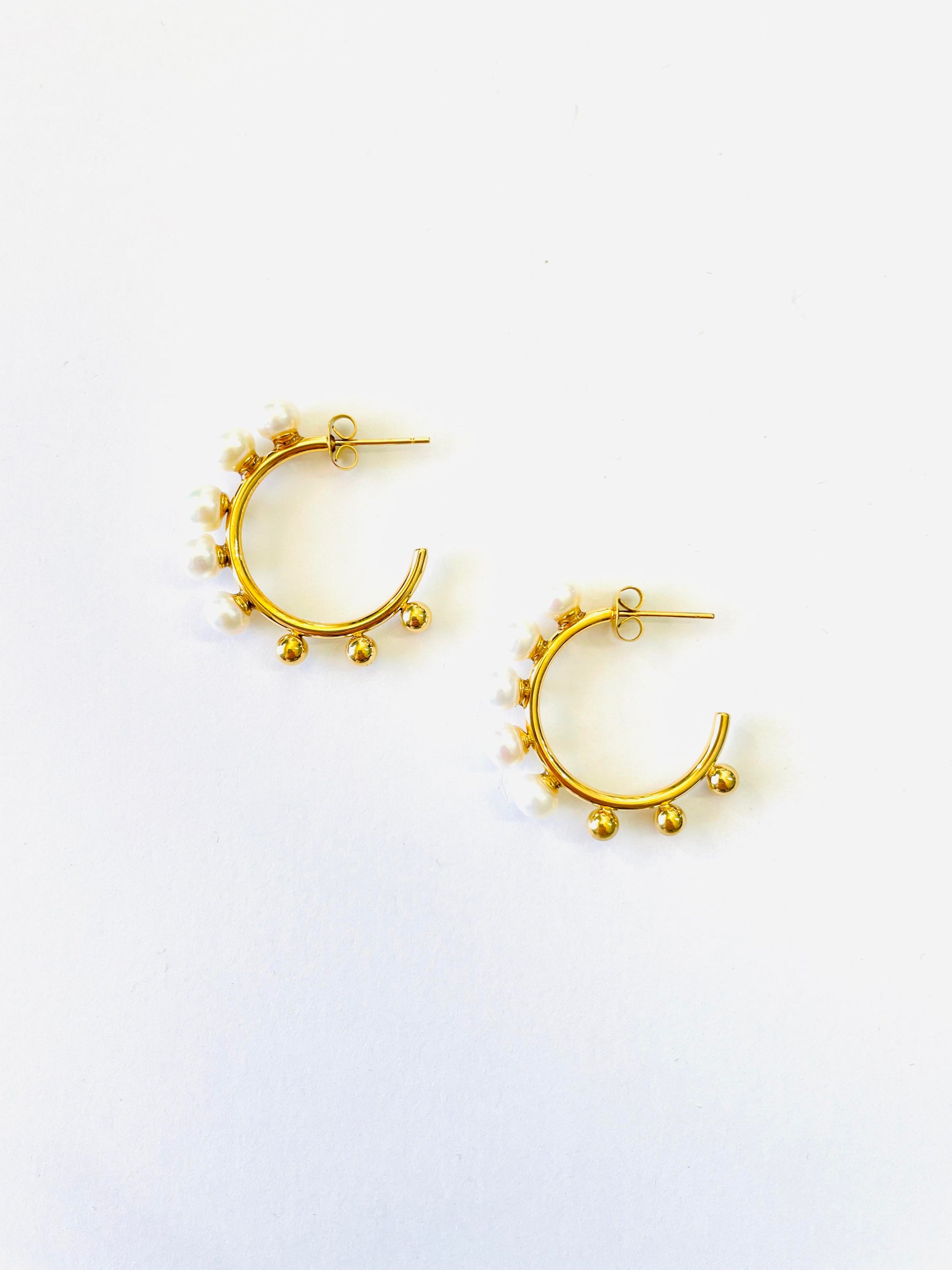 SMALL BEADED GOLD + PEARL HOOP EARRINGS {Waterproof Jewelry}