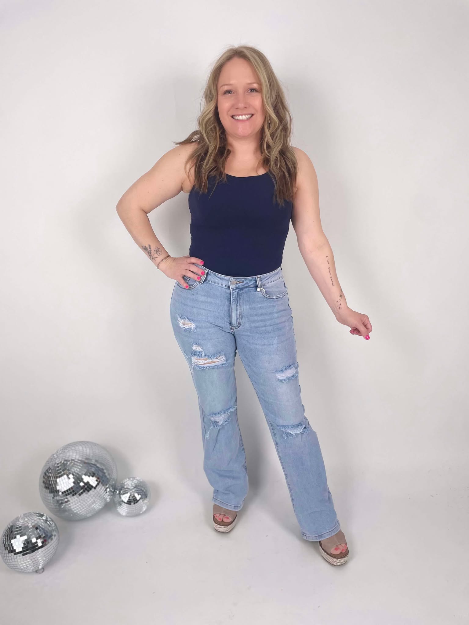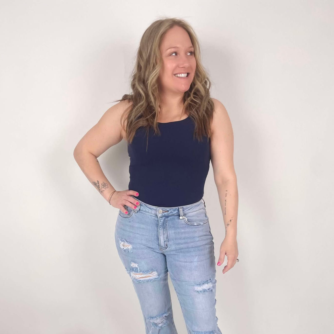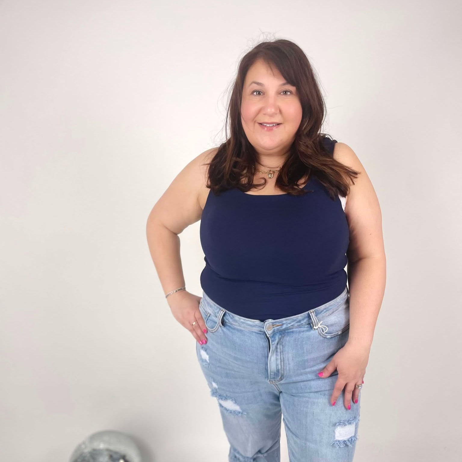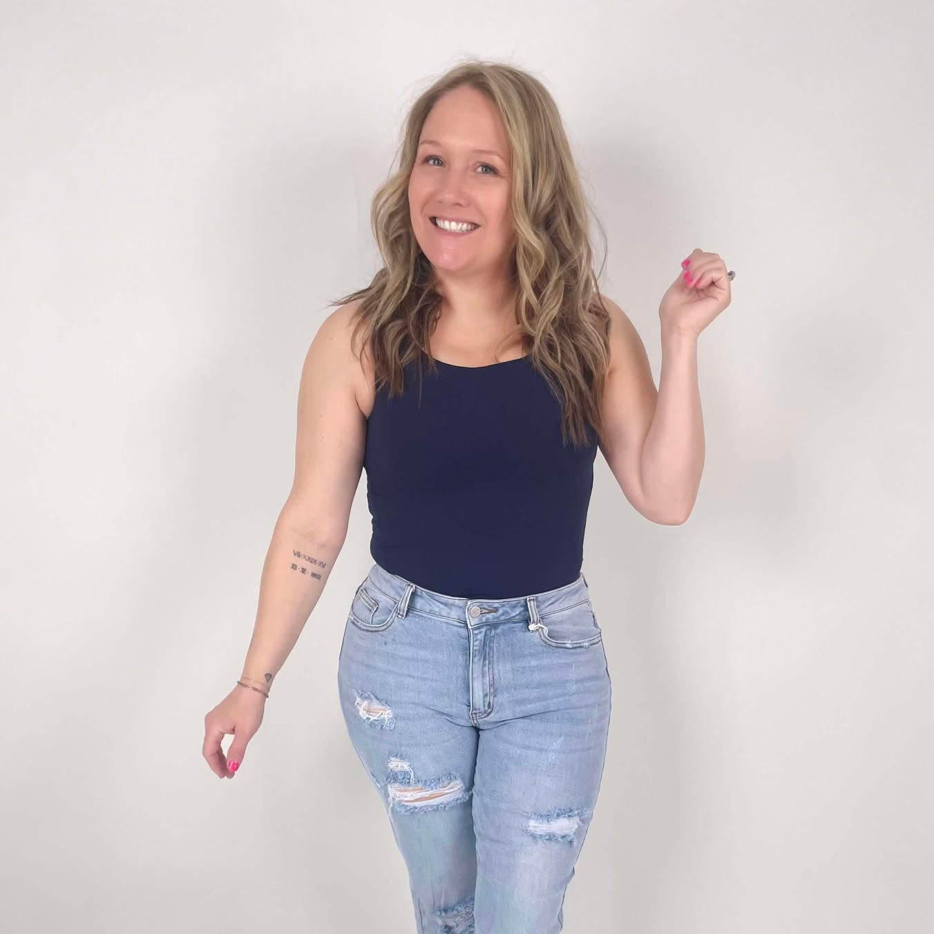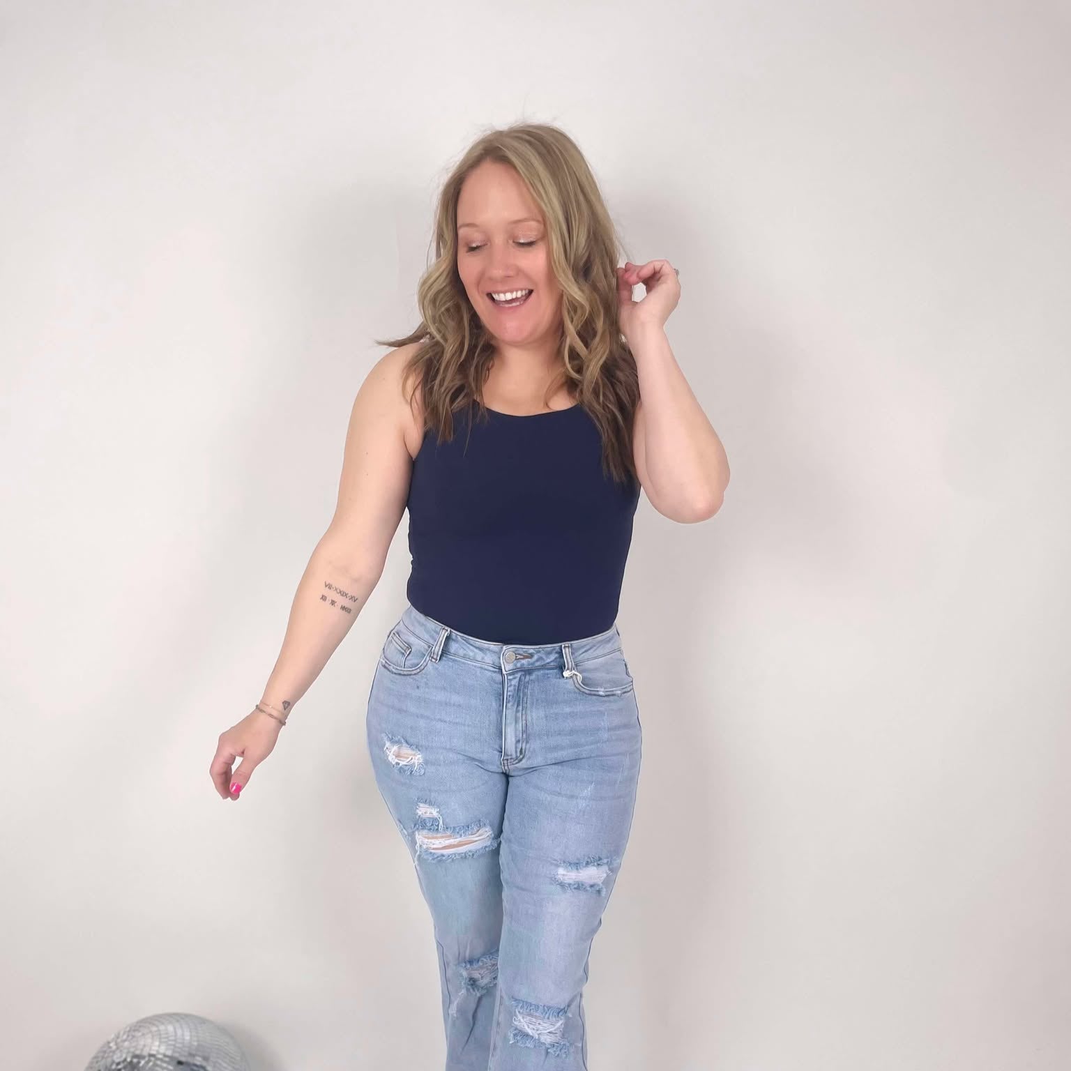 Smooth Moves Sleeveless Bodysuit in Navy {Size S-3X}
