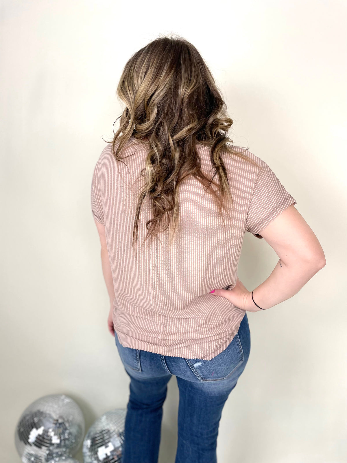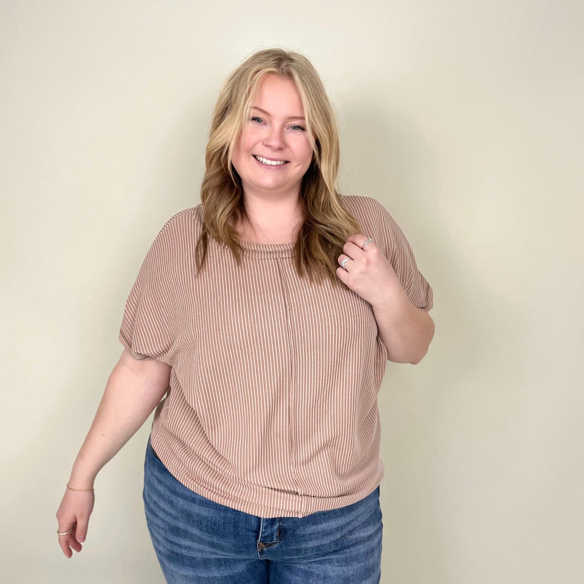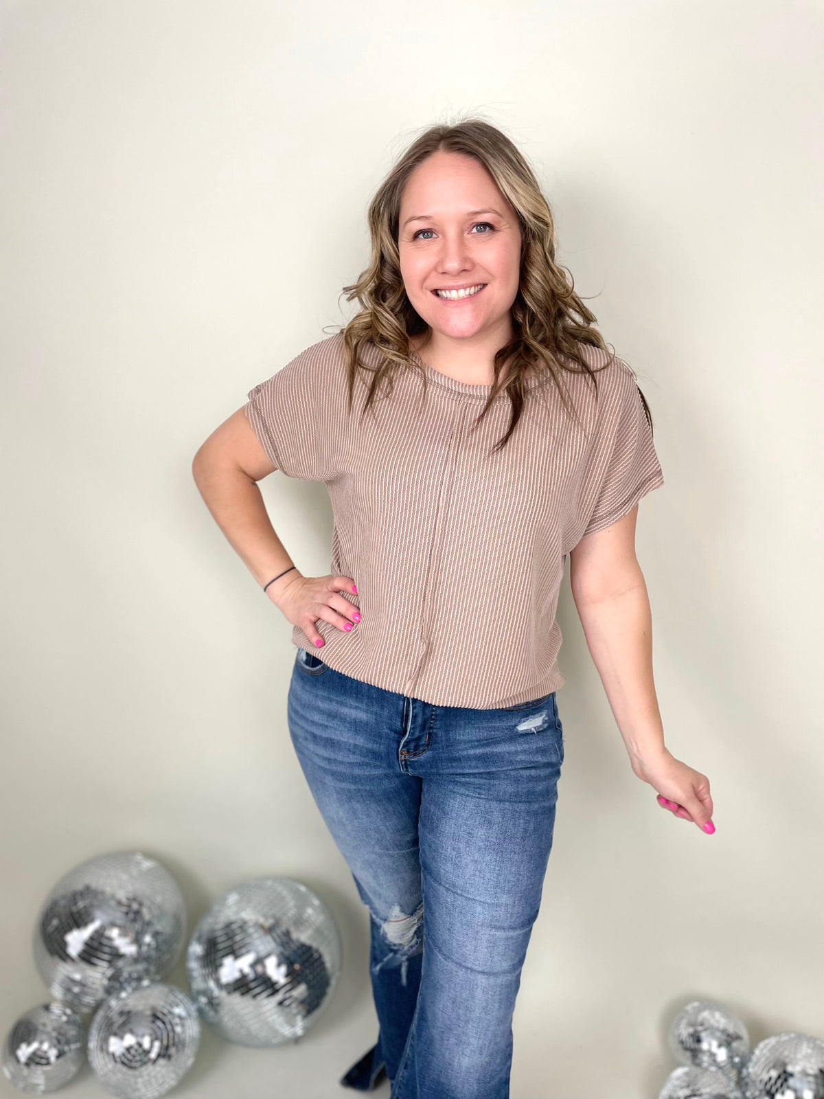 Add some modern, minimalist style to your wardrobe with the SOPHIA RIBBED TOP. Amazing 2 toned ribbed fabric just like our Reese Cardigans! Top is designed with an loose flowy fit, short sleeves and a raw hem down the middle for a subtly striking look !