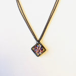 Square Floating Treasure Chest Necklace in Purple Hues set into Black Metal.