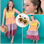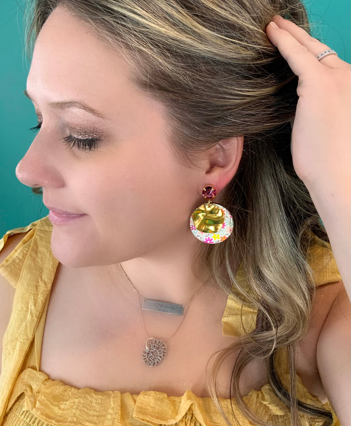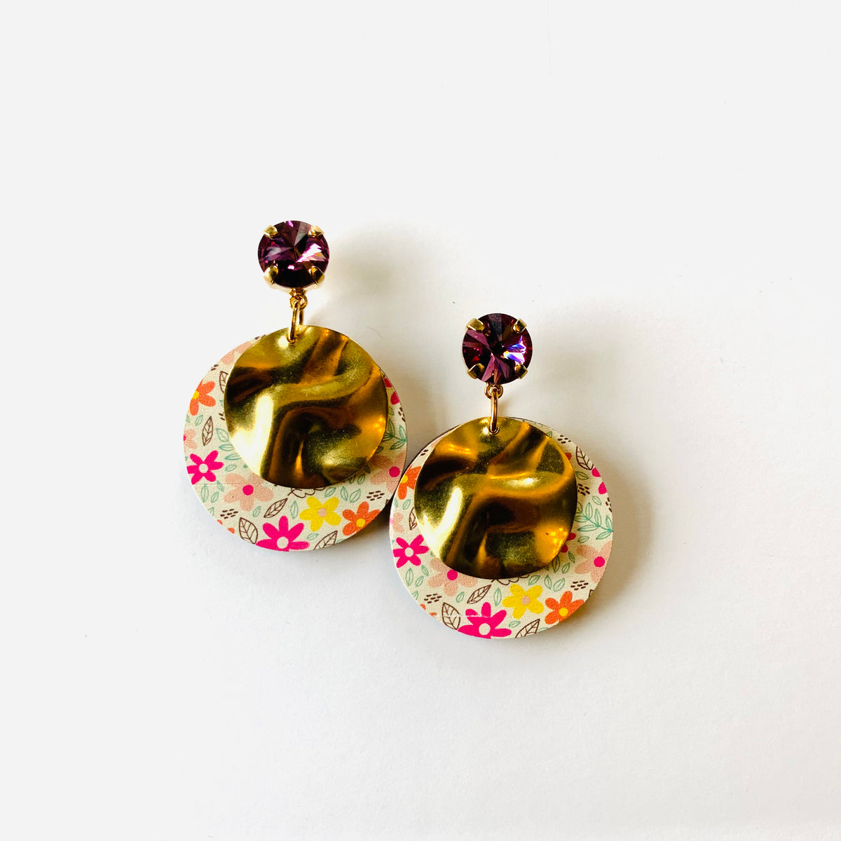 Sunset Boulevard Floral Earrings set into Shiny Gold Metal with Iris Crystals