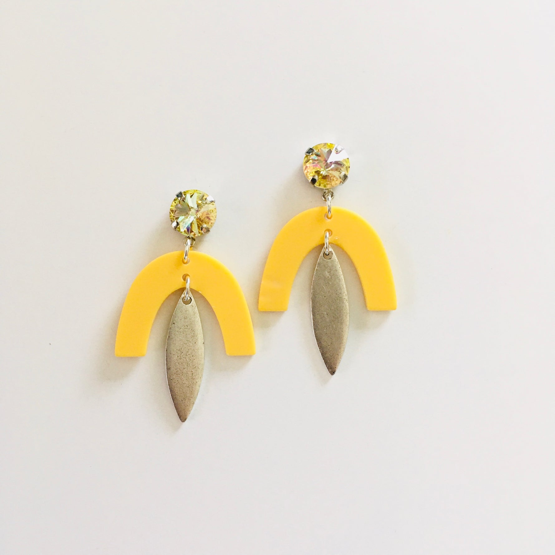 Sunshine Collection! Lemon Drop Earrings set into Shiny Silver Metal