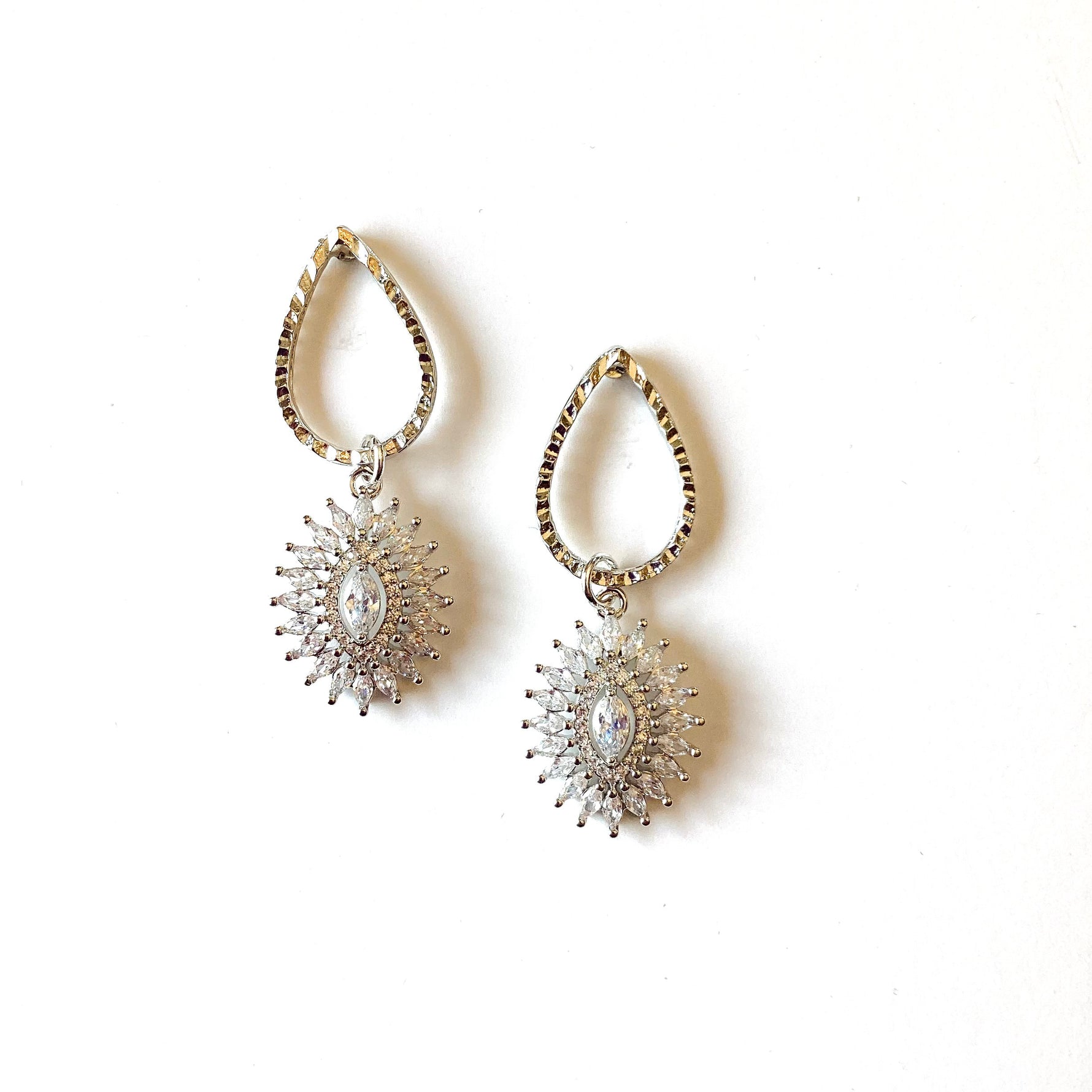 Sweet Sparkle Earrings set into Shiny Silver Metal with Crystal Decorative Pendant.