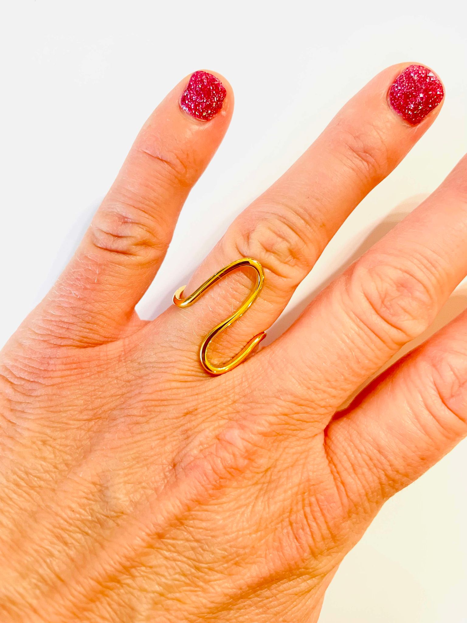 Make a splash with our Curved Line Ring! This unique design, crafted from 18k gold plated steel, is perfect for those who love to add a little flair to their everyday style. Plus, with its waterproof feature, you can rock this ring while swimming, showering, or dancing in the rain. Dive in and upgrade your jewelry game now!