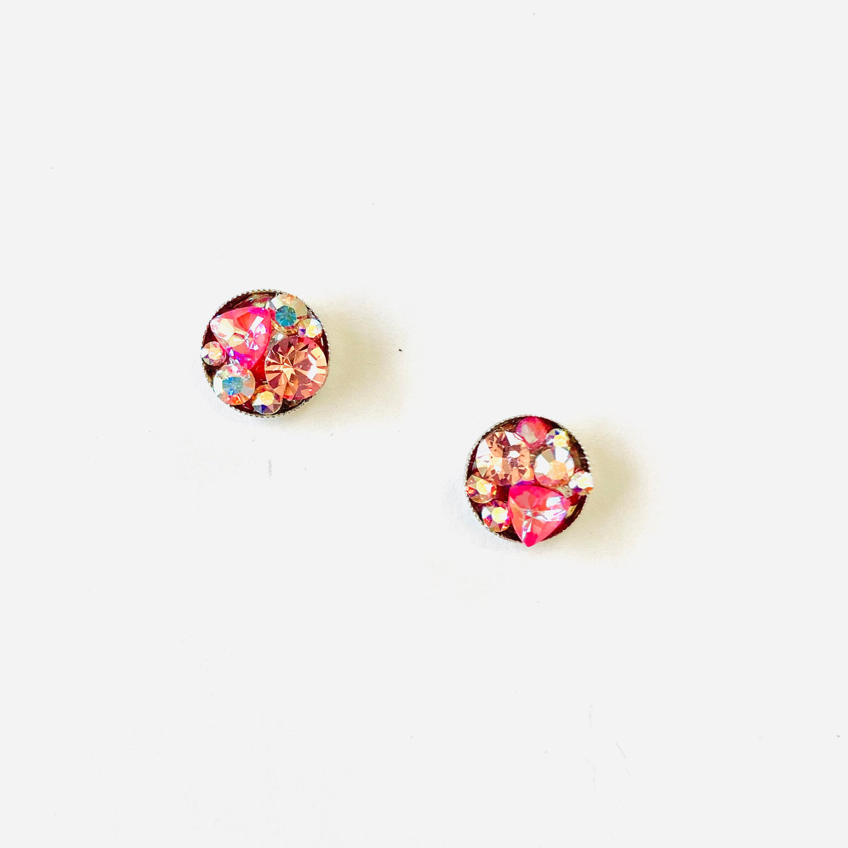 Treasure Chest Post Earring in Ultra Pink Hues set into Rose Gold Metal OR Shiny Silver Metal.