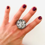 Treasure Chest Round Ring in Crystal set into Black Metal with Crystal (Diamond Crystal) No two are alike! Layers on Layers of Crystals.
