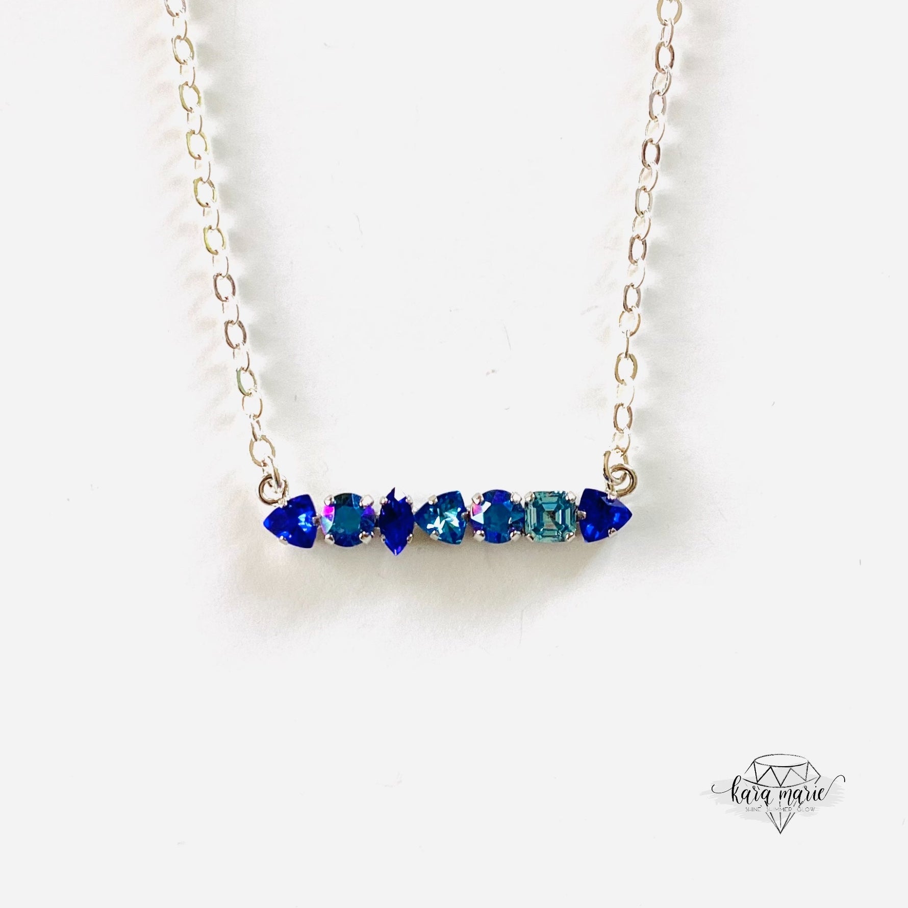 Crystals in Majestic Blue, Sapphire Glacier Blue, Royal Blue DeLite, and Aqua