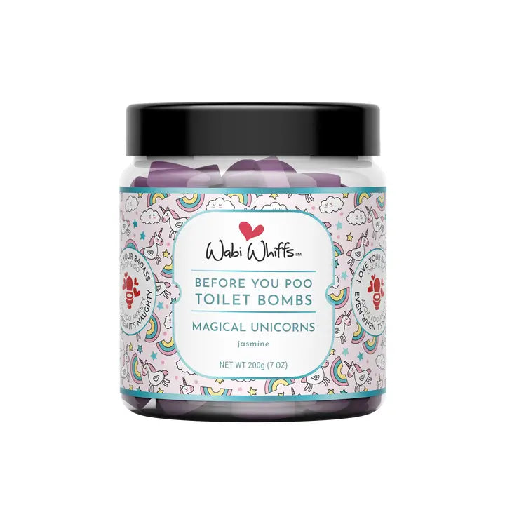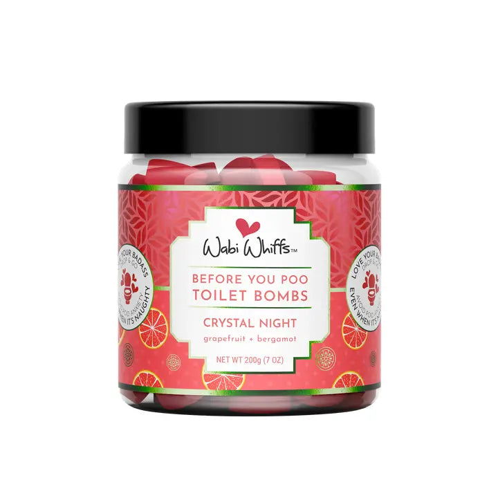 Be the Boss of Your No. 2 and avoid poo anxiety. Don't hide these stylish Toilet Love Bombs! Keep them handy and eliminate poo odor instantly. Drop 1-2 fizzing bombs (no judging) into the toilet. An effervescing fragrant film forms on the toilet water trapping and eliminating odors. Just Drop, Go and Flush when done.