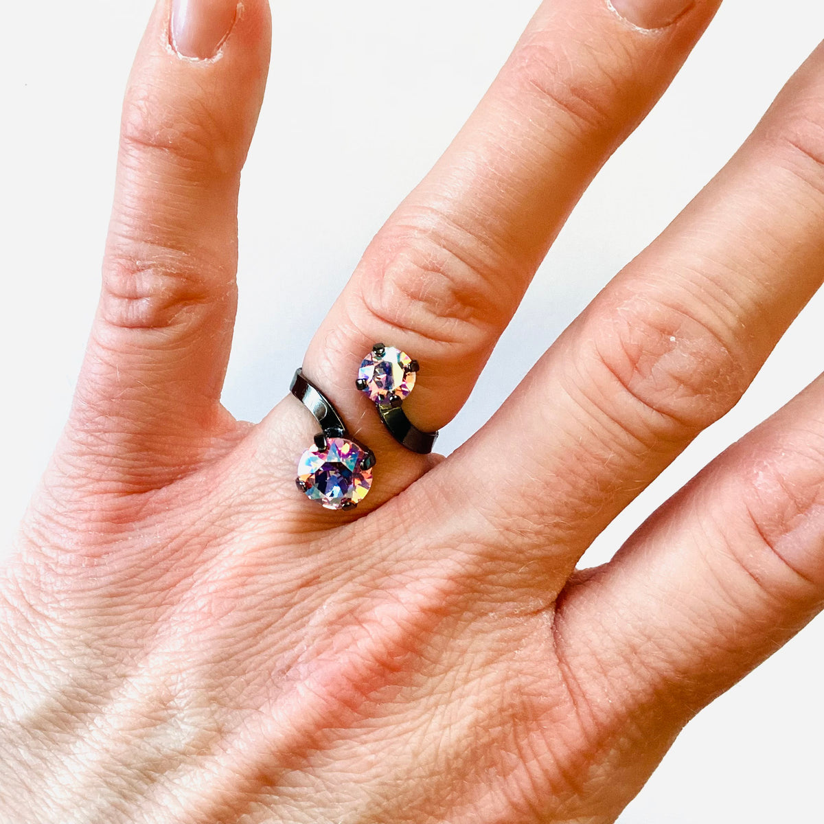 Wrap Ring in Violet AB x Rose Shimmer set into Black Metal. Crystals in Violet AB and Rose Shimmer.