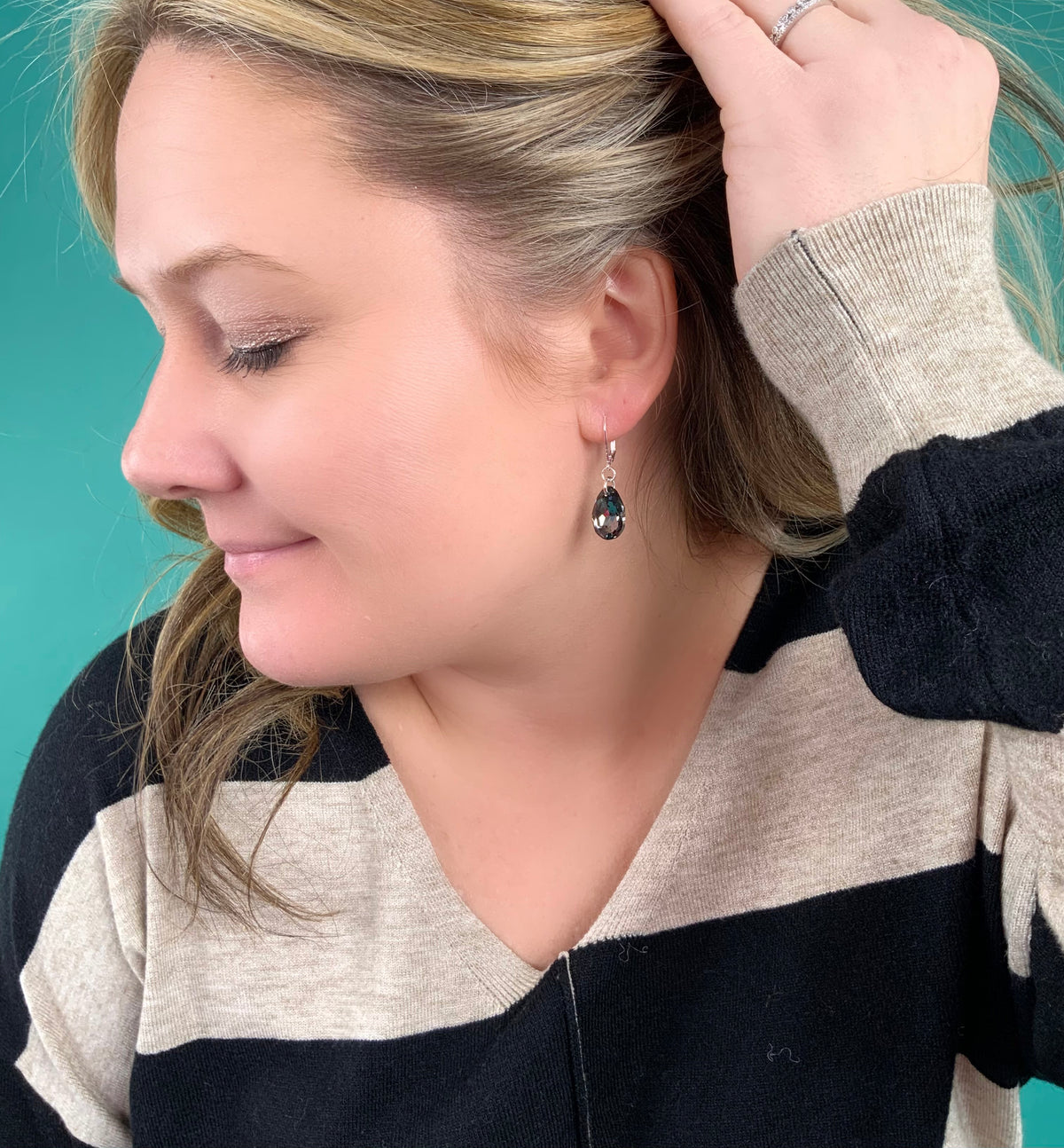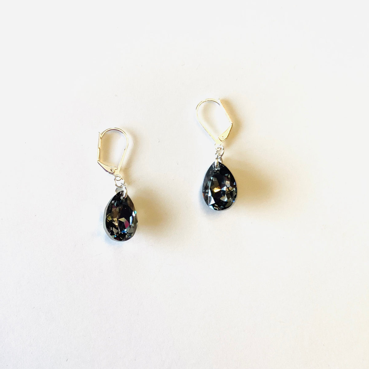 You Made Me Happy Earrings set into Shiny Silver Metal with Silver Night Crystals