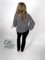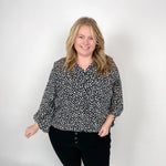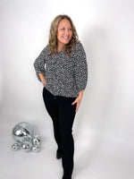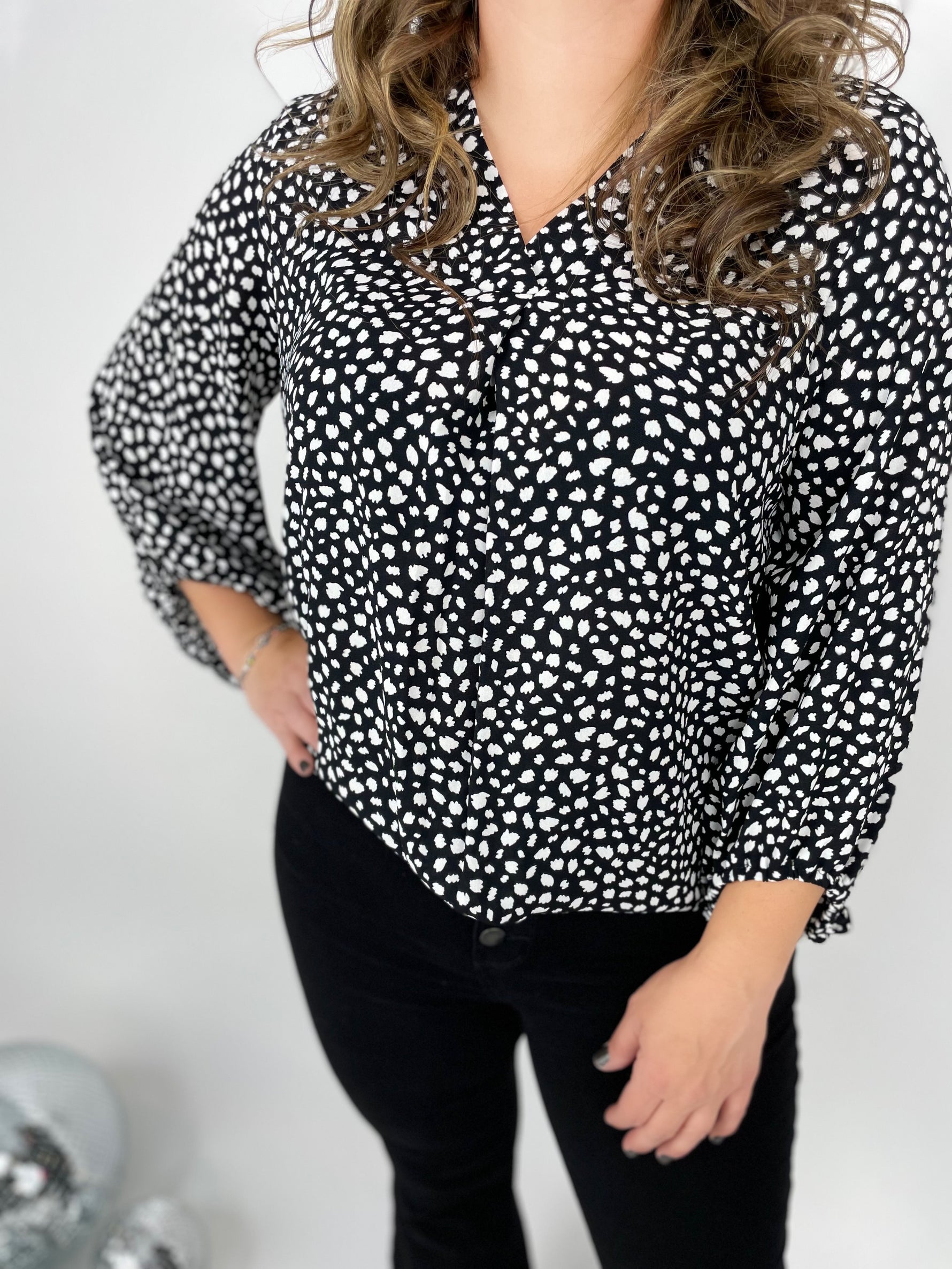 Show off your wild side with this leopard-print top. Features include a v-neck, banded hem, and three-quarter sleeves. Wear it to the office with a pencil skirt or rock it on the weekend with denim shorts.